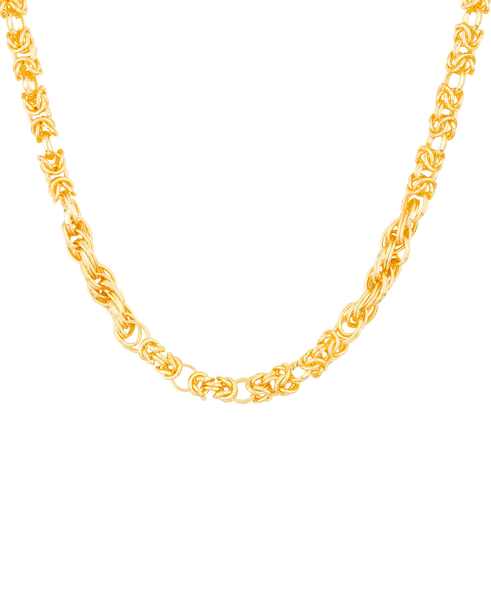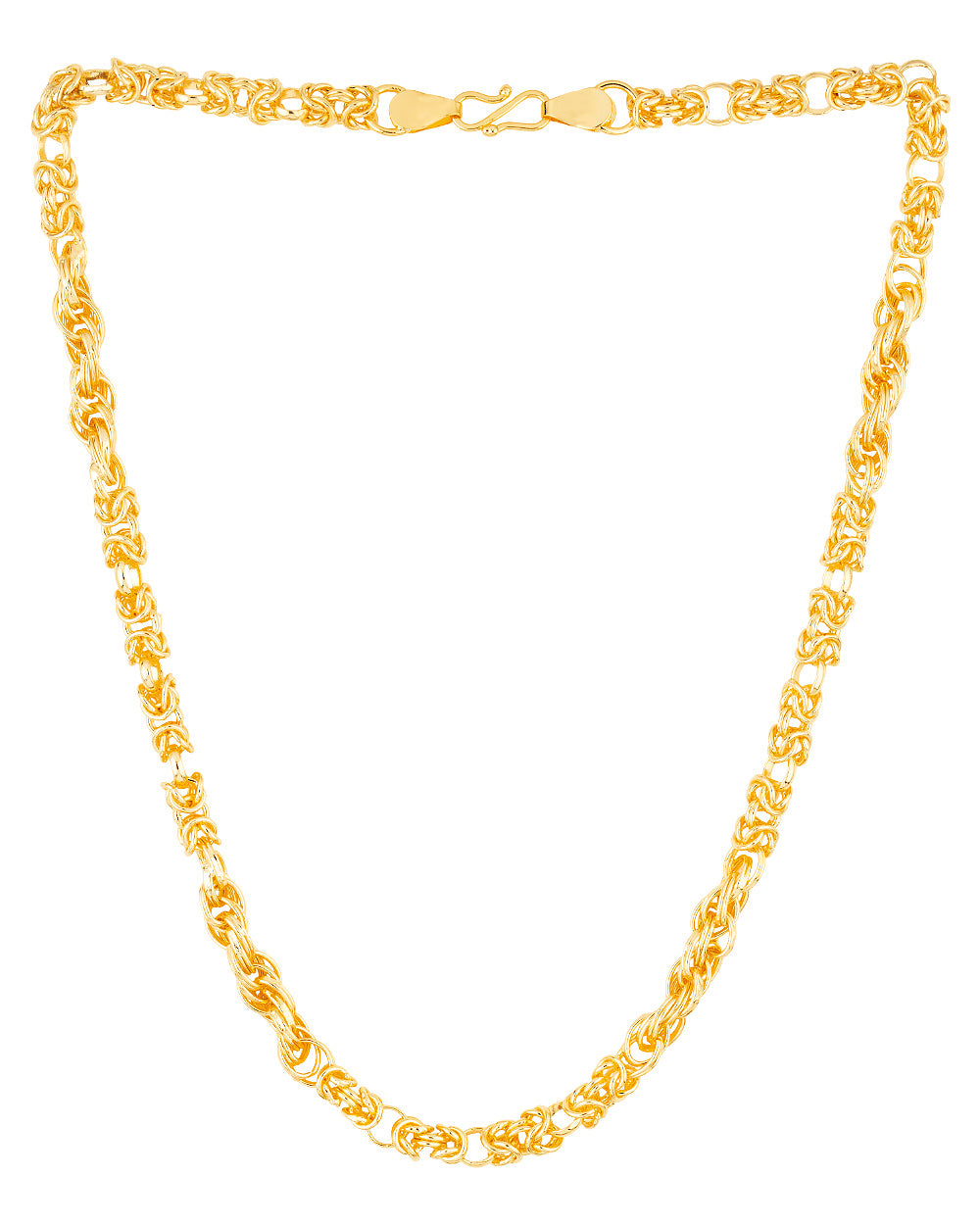 Singapore link chain for men made from brass and yellow gold plated. Pair with formal attire. To make your accessories last longer avoid harsh chemicals and moisture. Keep dry, clean with dry cloth and wear with panache. "India?s largest fashion jewelry brand DARE, comes from the House of Voylla as a limited edition of handcrafted accessories for the modern Indian men. "
