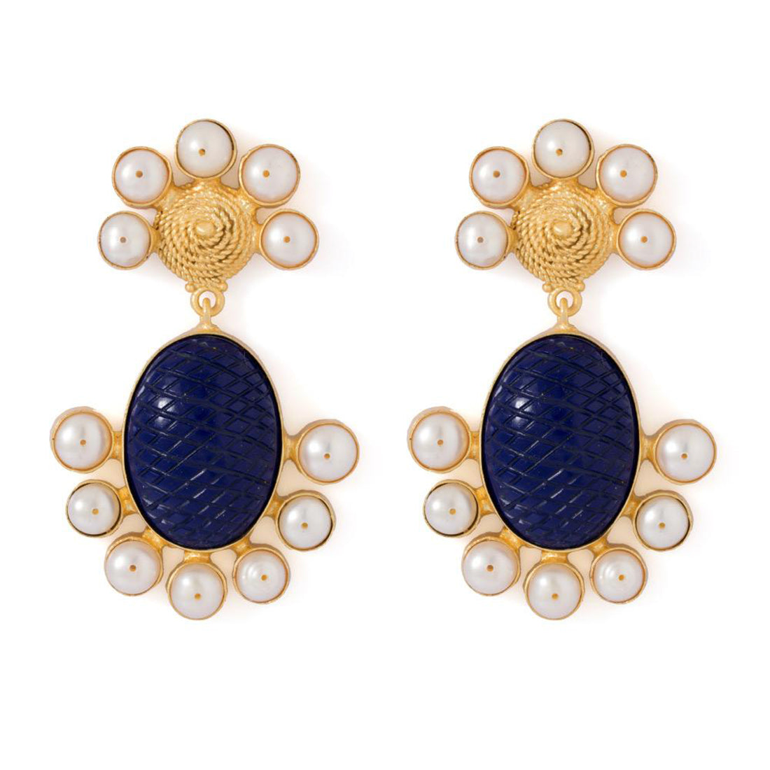 Flamboyant Pair Of Blue Stone Studded Earrings