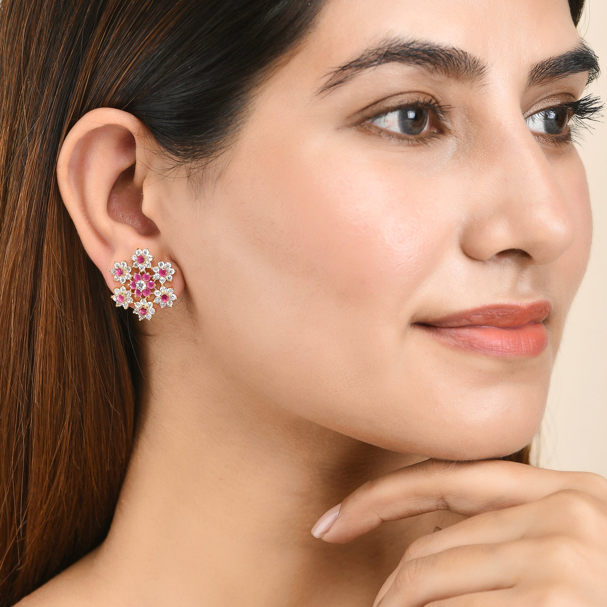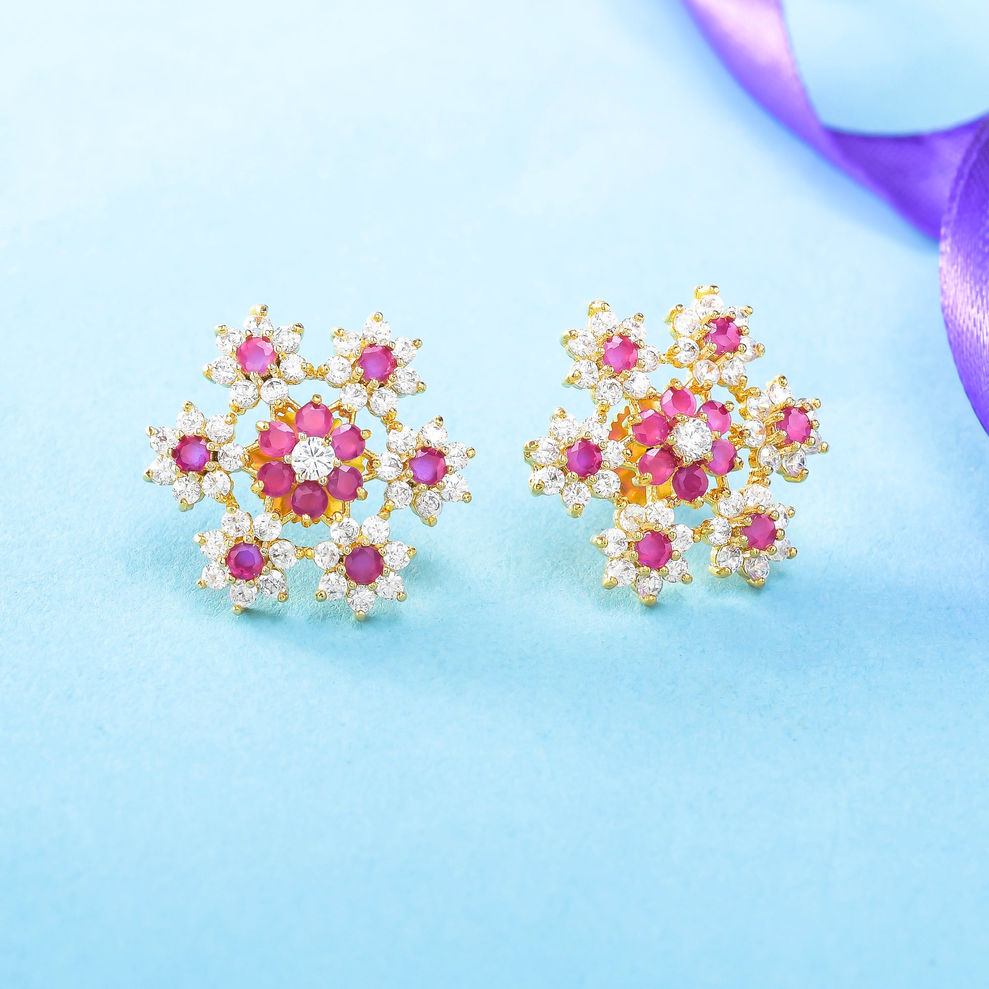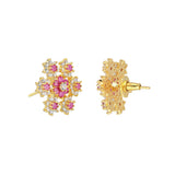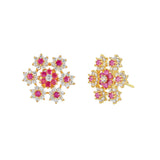 Floral Bunch Red CZ Stud Earrings