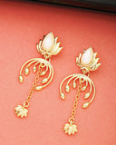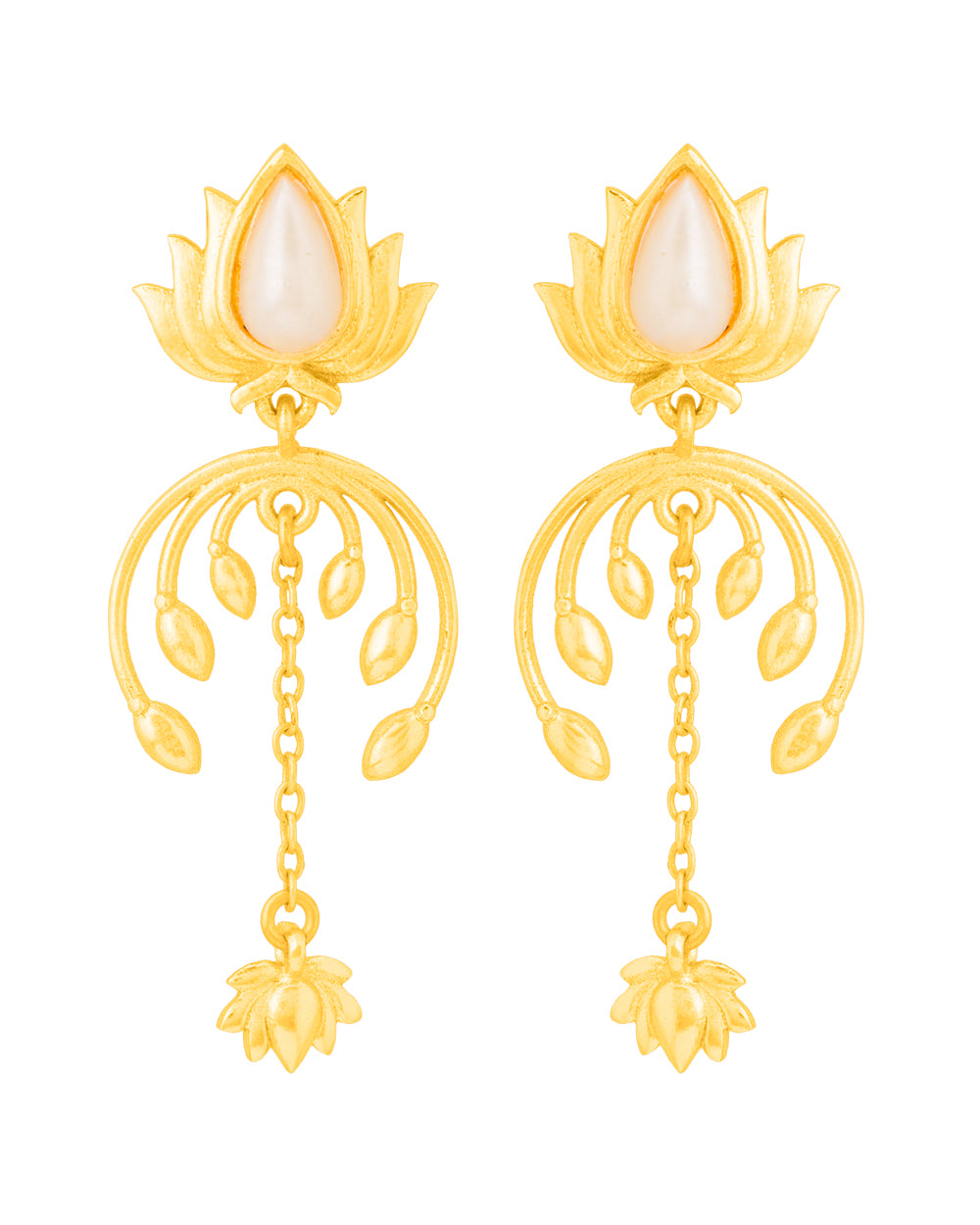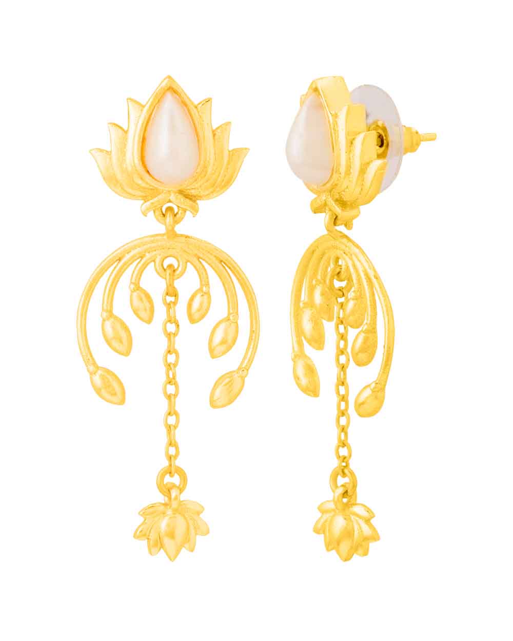Be the centre of all attention everywhere you go with these stunning drop earrings, which have been fashioned out of brass and embellished with beautiful white, teardrop cut pearls. The drop earrings also feature tiny floral motifs that add to their charm. Yellow gold plated for maximum brilliance, this pair is a true classic! This piece of jewelry comes with the Voylla assurance of quality and durability. Caring for your fashion jewelry: We at Voylla take care of every piece of jewelry so that you don't need to spend hours caring for them.