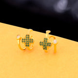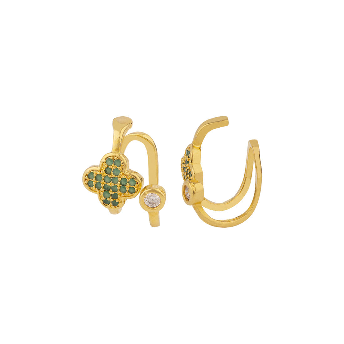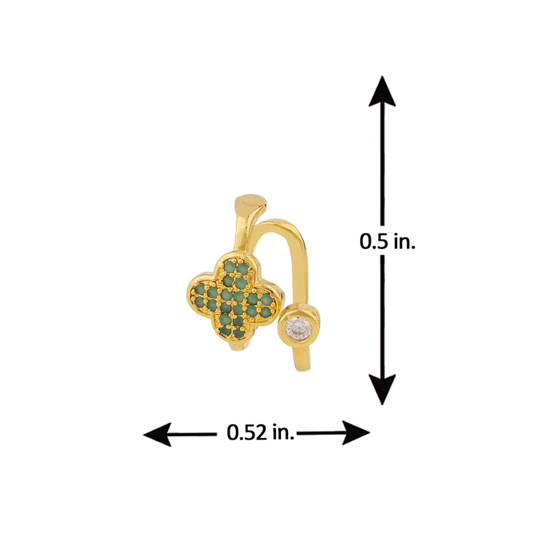 Floral motif earrings with yellow gold plating. Fashioned out of brass and American Diamond gemstones embellished. Good for casual looks.