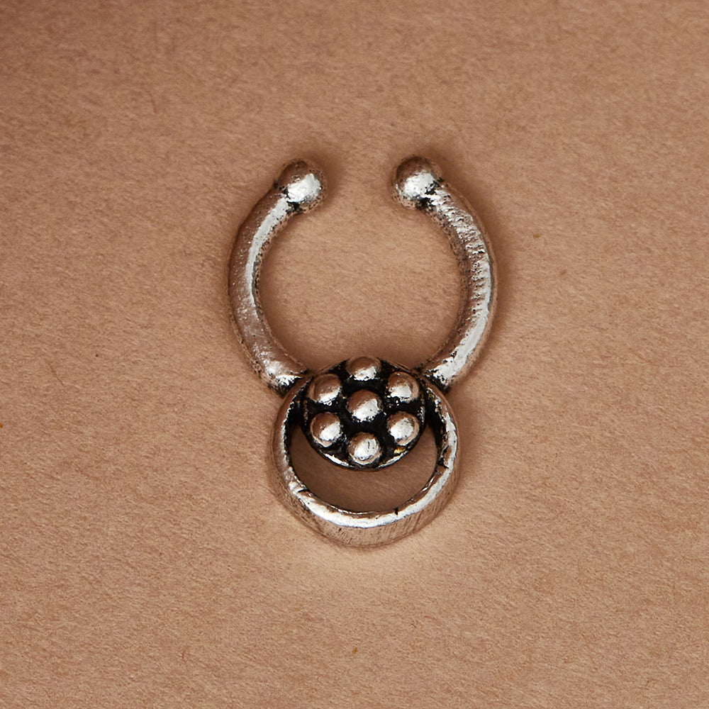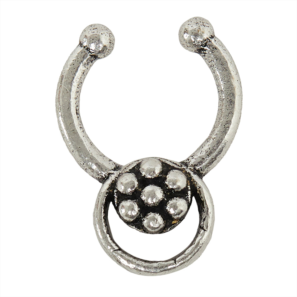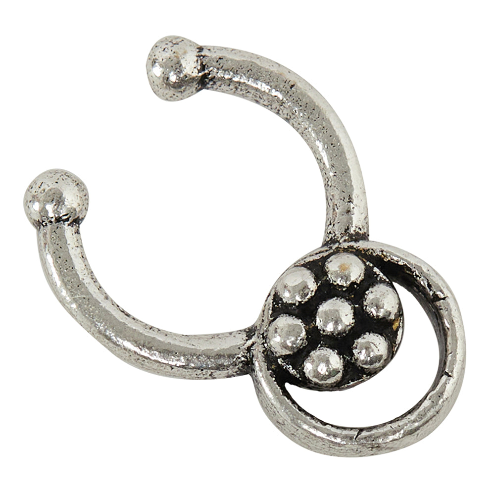 Floral motif brass nose clip with oxidized silver plating. Wear with casual attire.