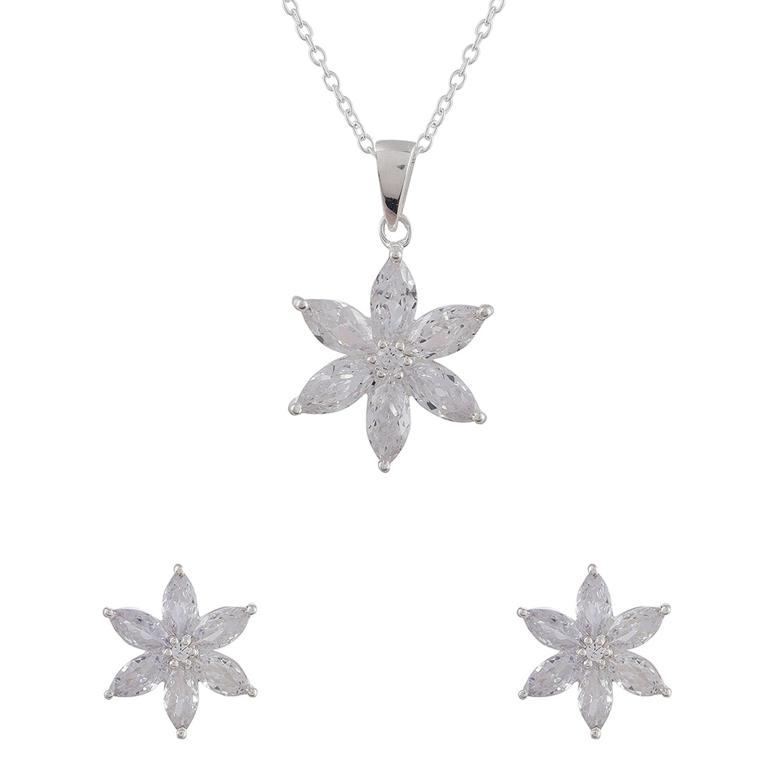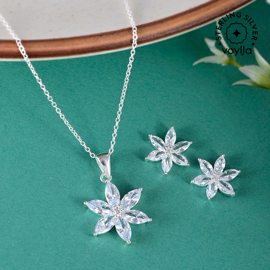 Floral Motif Silver Plated 925 Sterling Silver Necklace Set