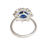 Floral Motif Sterling Silver Round Cut Sapphire Embellished Adjustable Ring