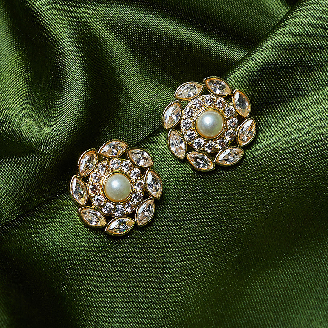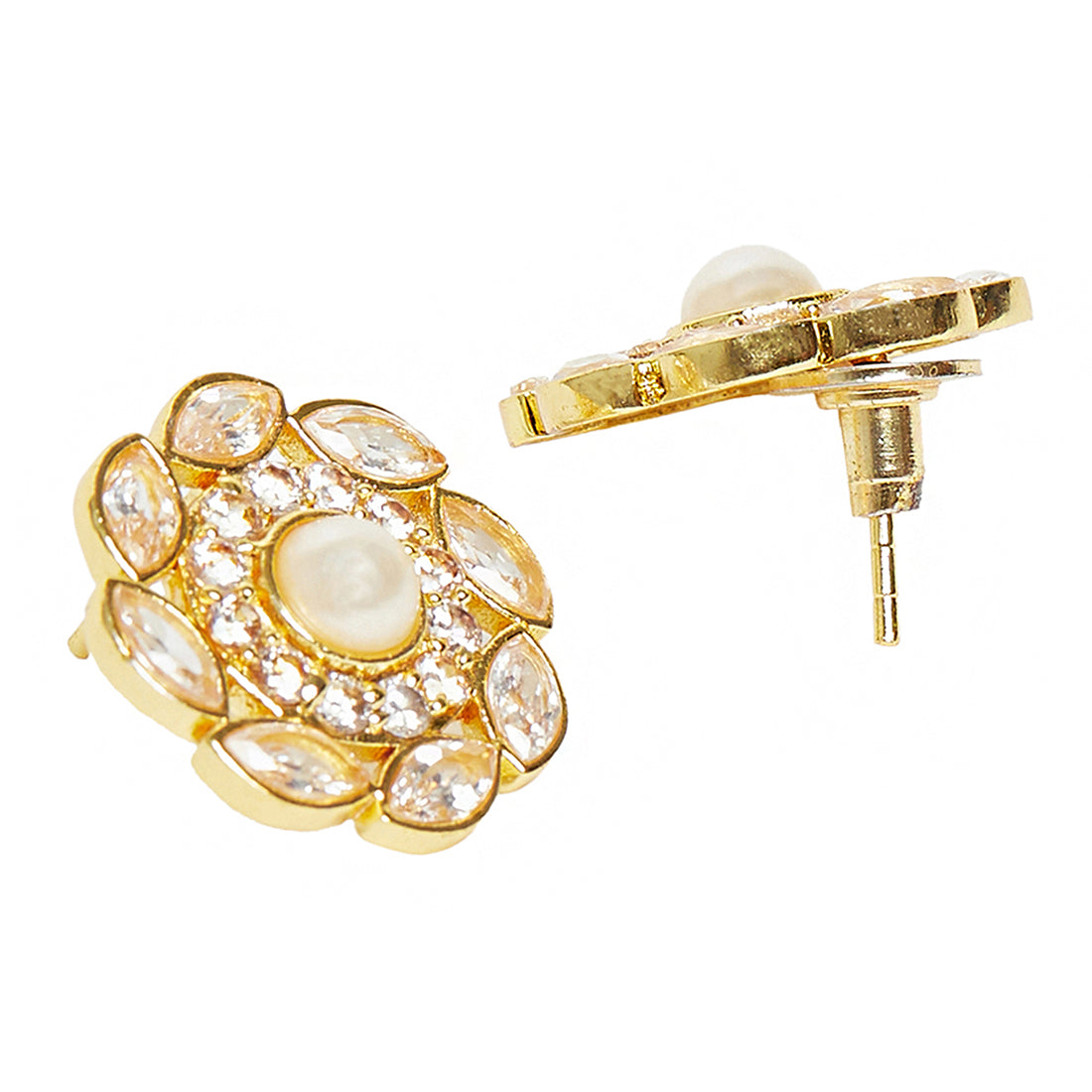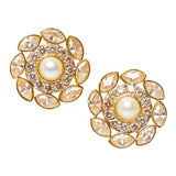 Floral Pearl Embellished Gold Plated Stud Earrings