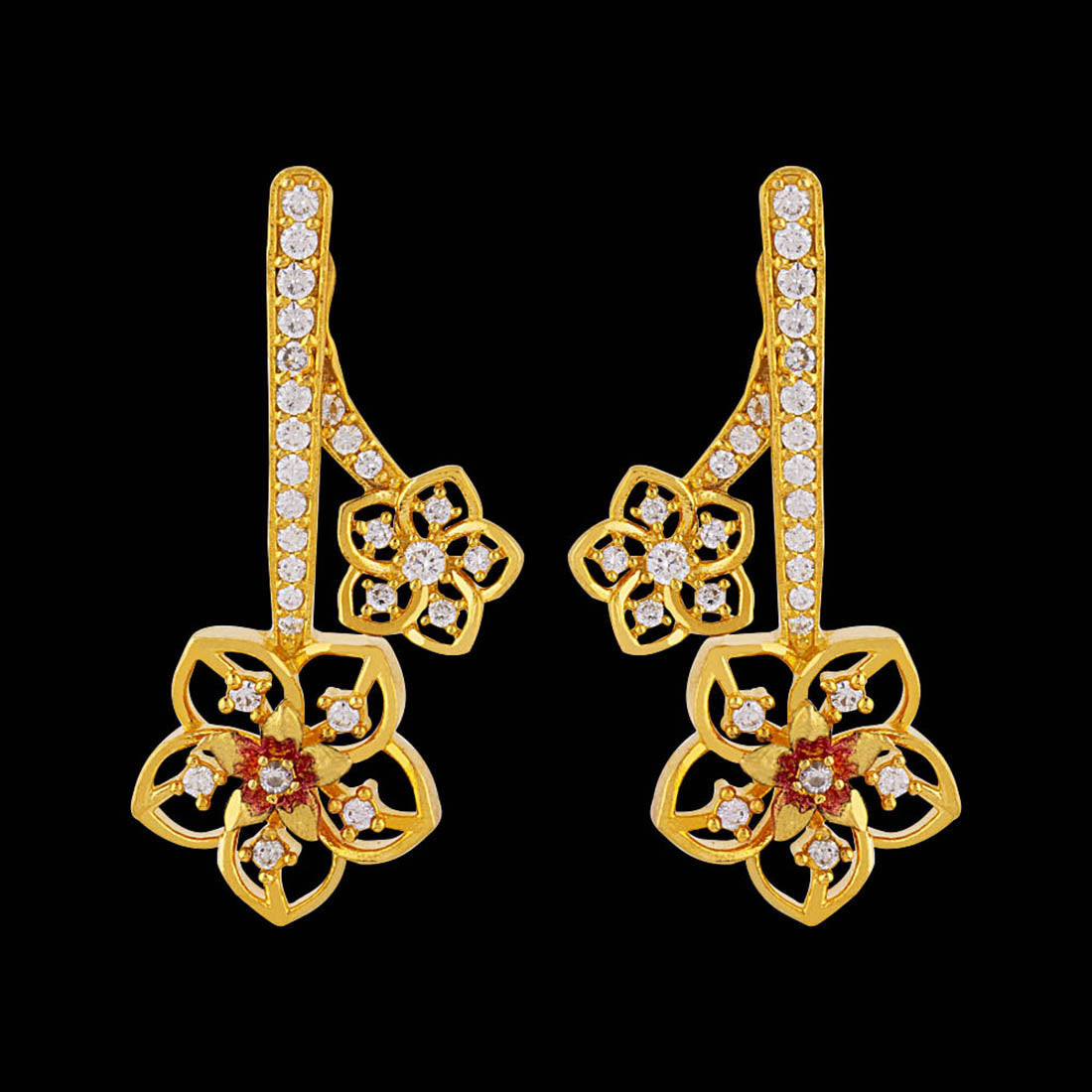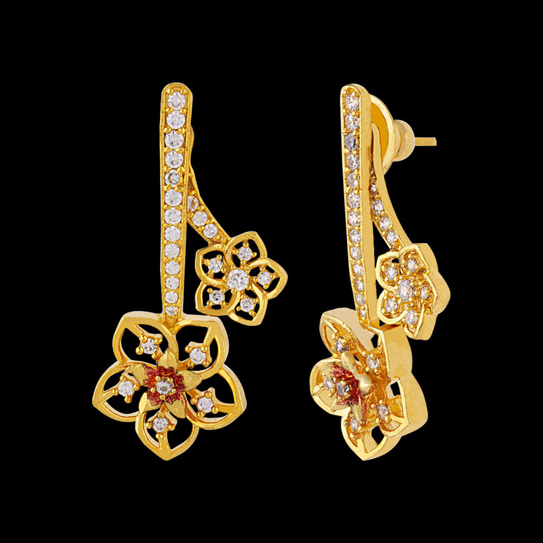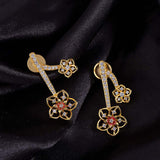 Floriana CZ Floral Drops Antique Plated Earrings
