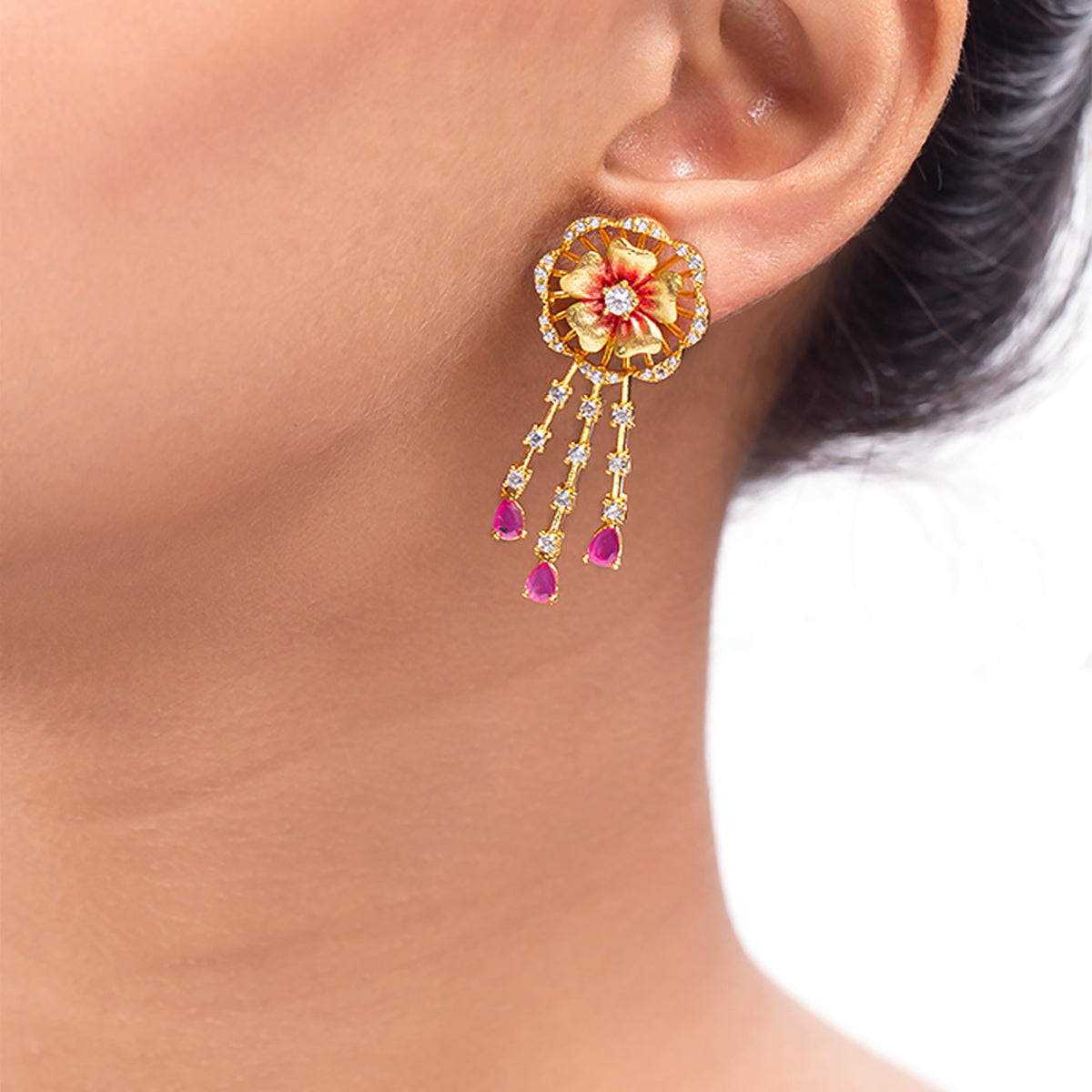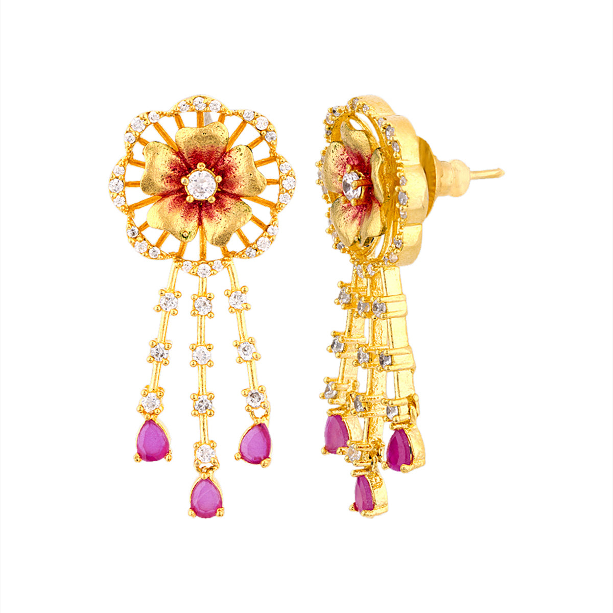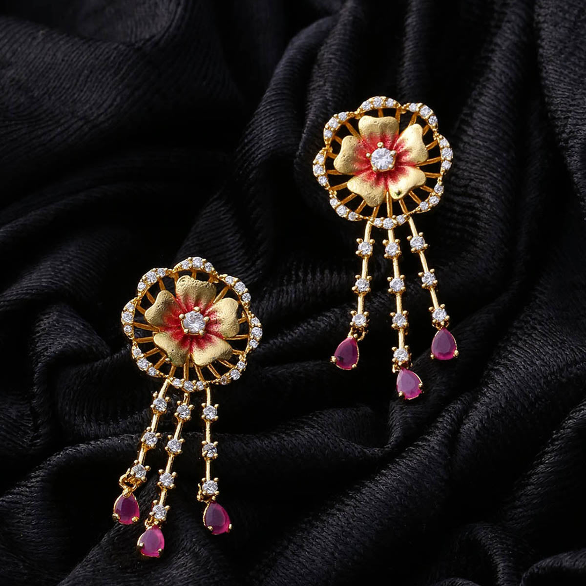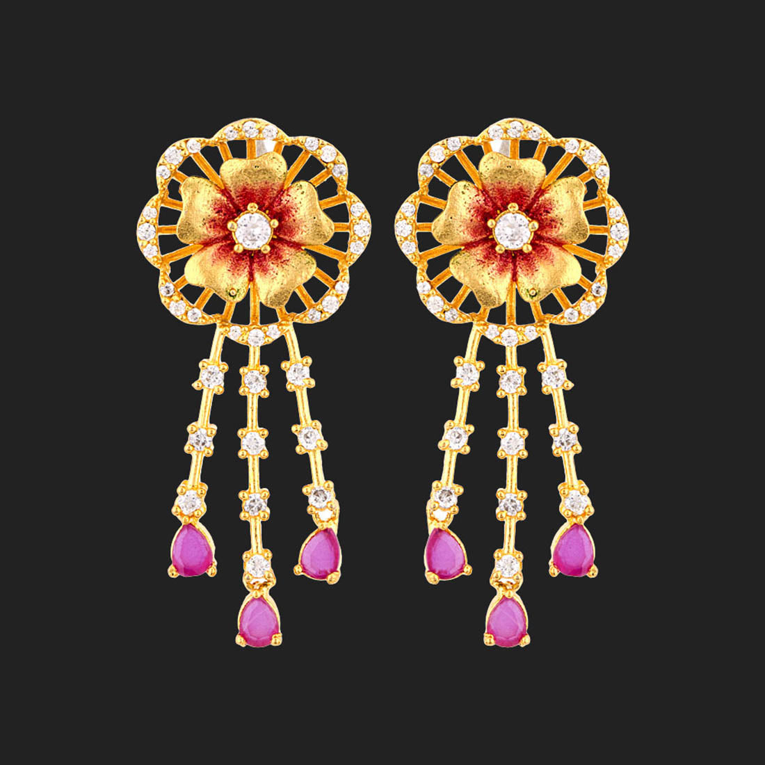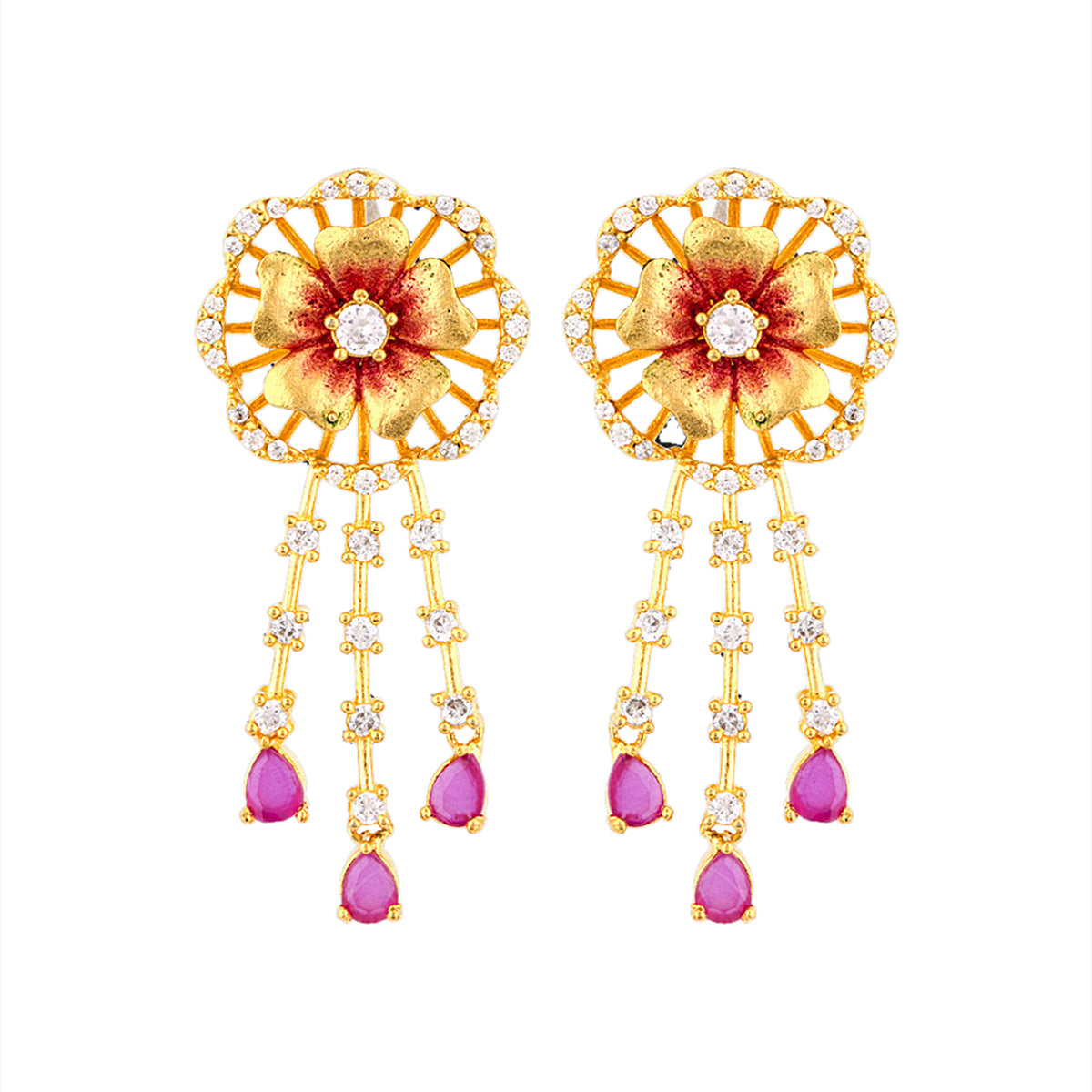 Floriana CZ Floral Tassels Earrings