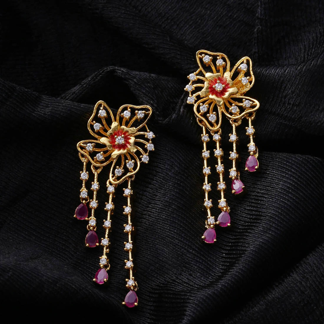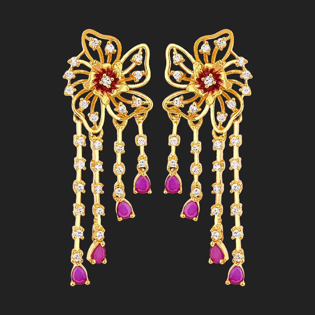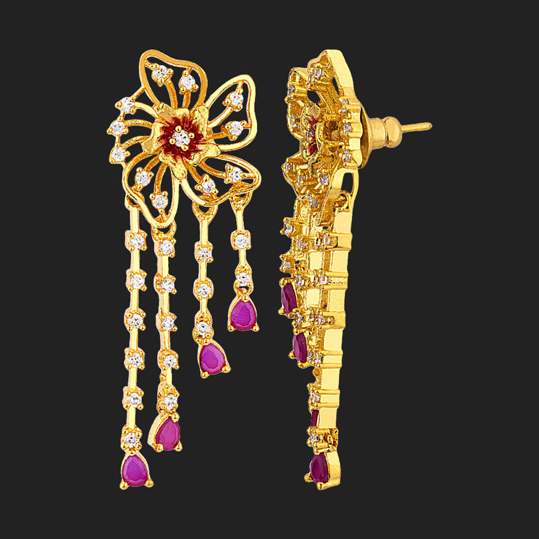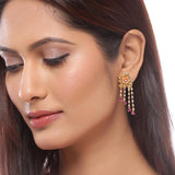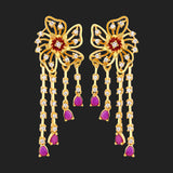 Tassels drop earrings made from brass and inspired by flowers and nature. Gems embellished and yellow gold plated. Wear with a formal kurta.