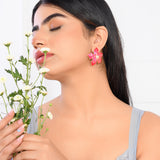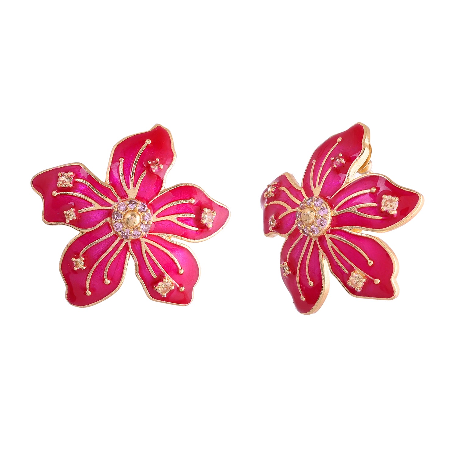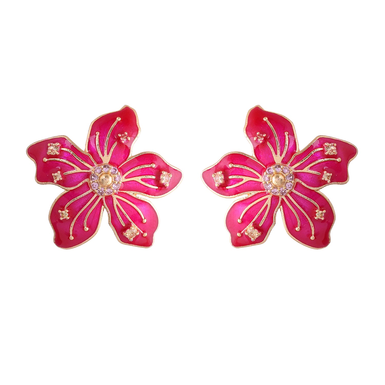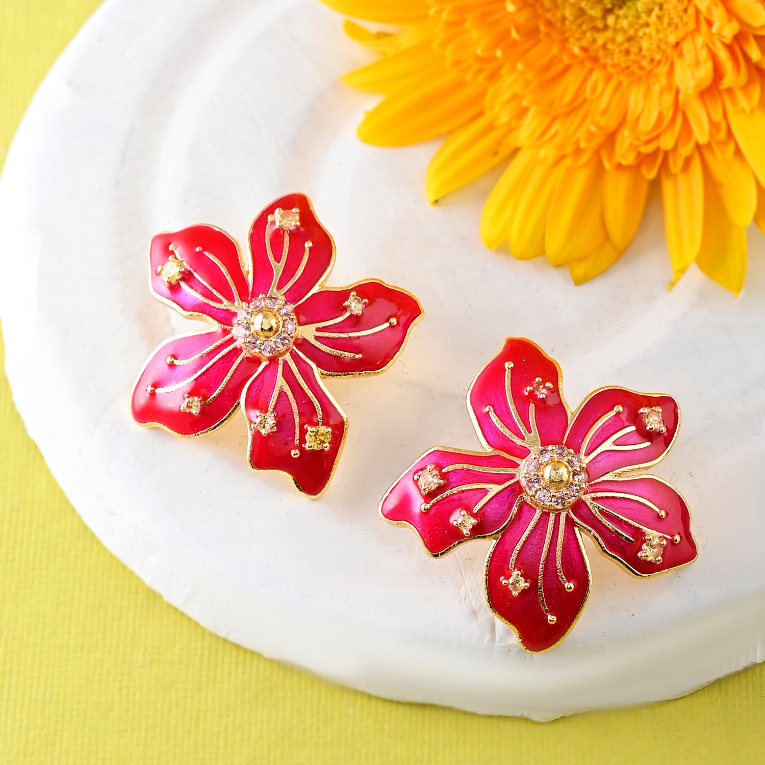 Make a statement with our Azure Blossom earrings. Crafted from brass with a lustrous gold plating, these big studs feature intricate blue floral designs accented with sparkling CZ stones in the center. Elevate your look with a touch of elegance and sophistication!