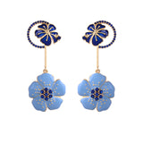 Flower Fantasy Ocean Blue Hibiscus Dangler Earrings