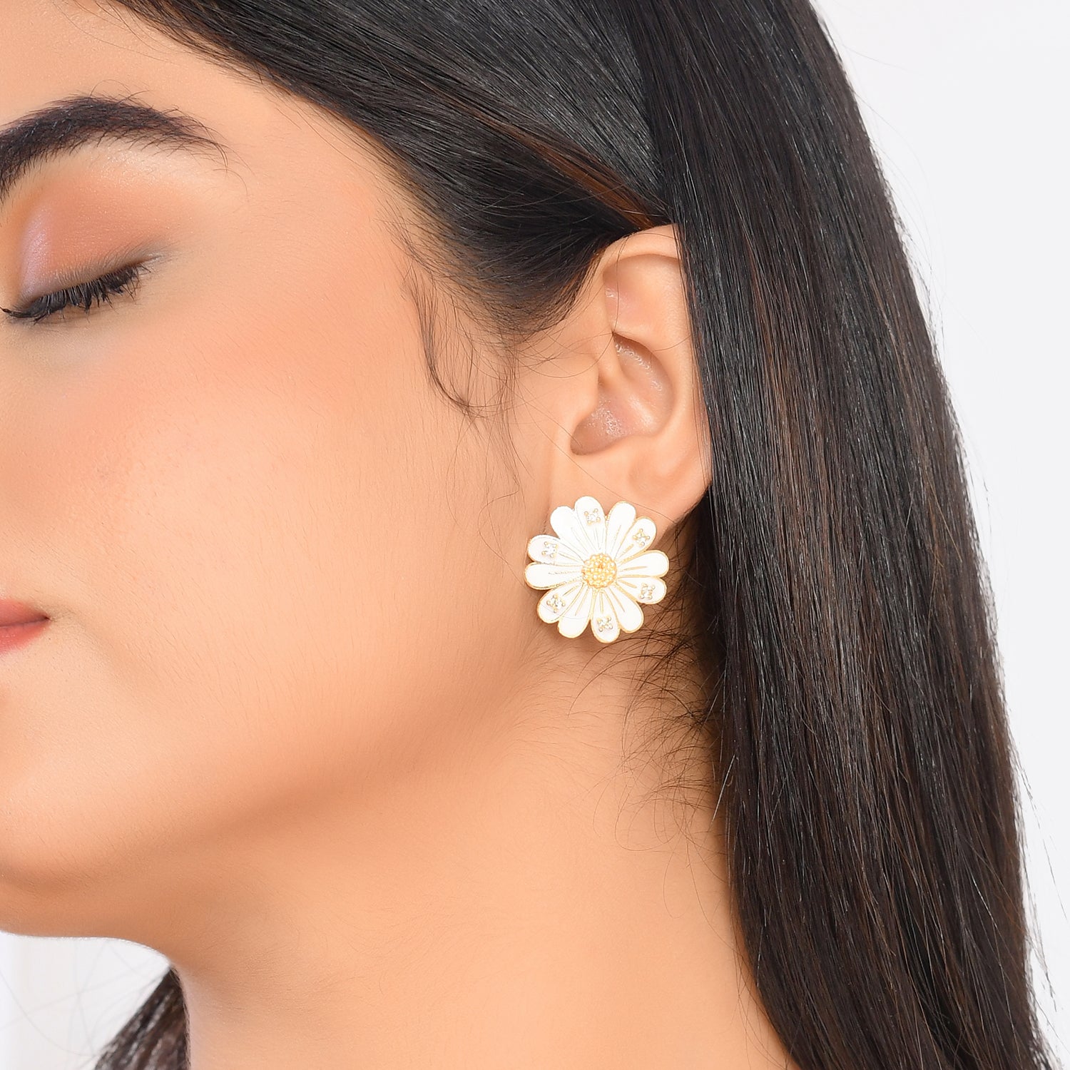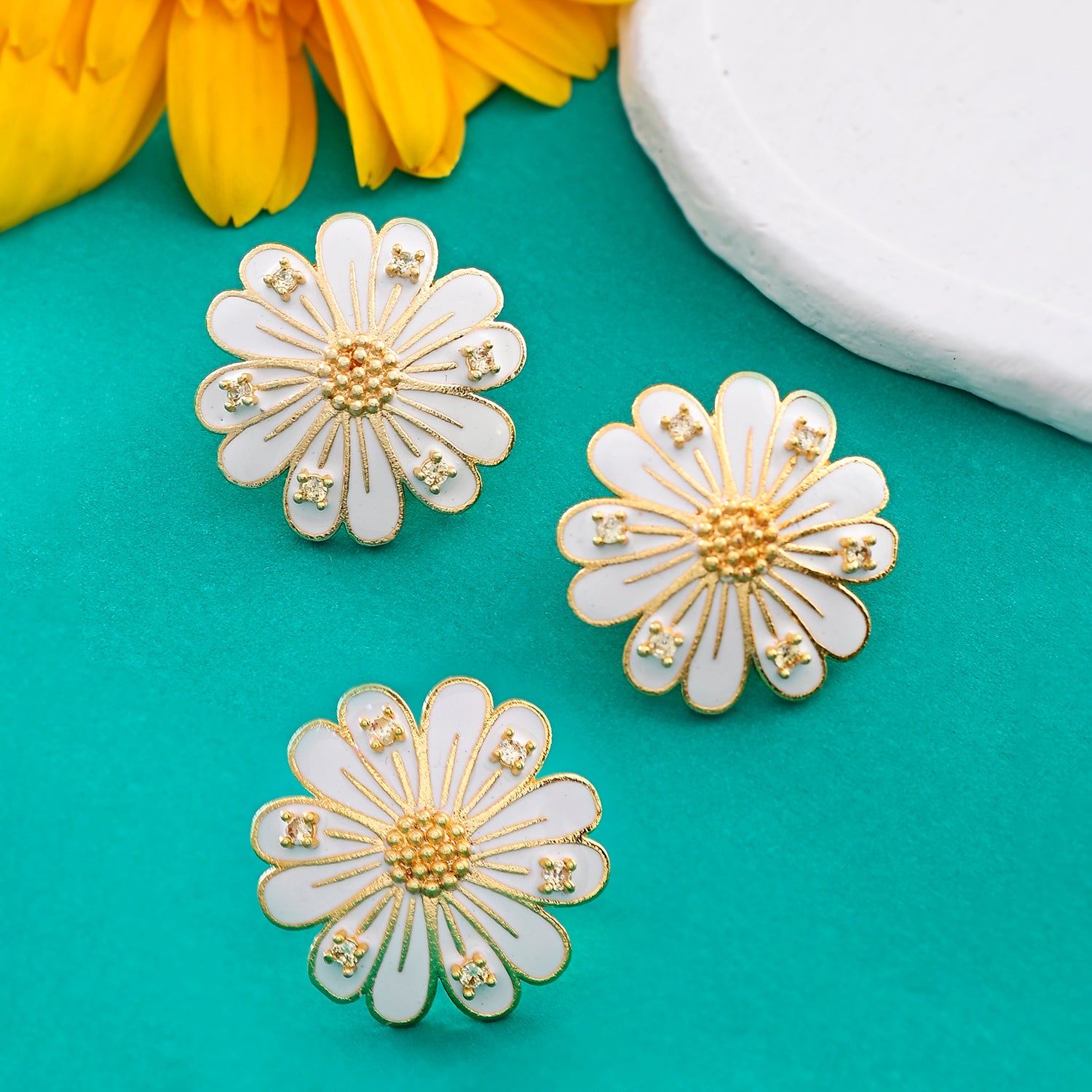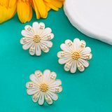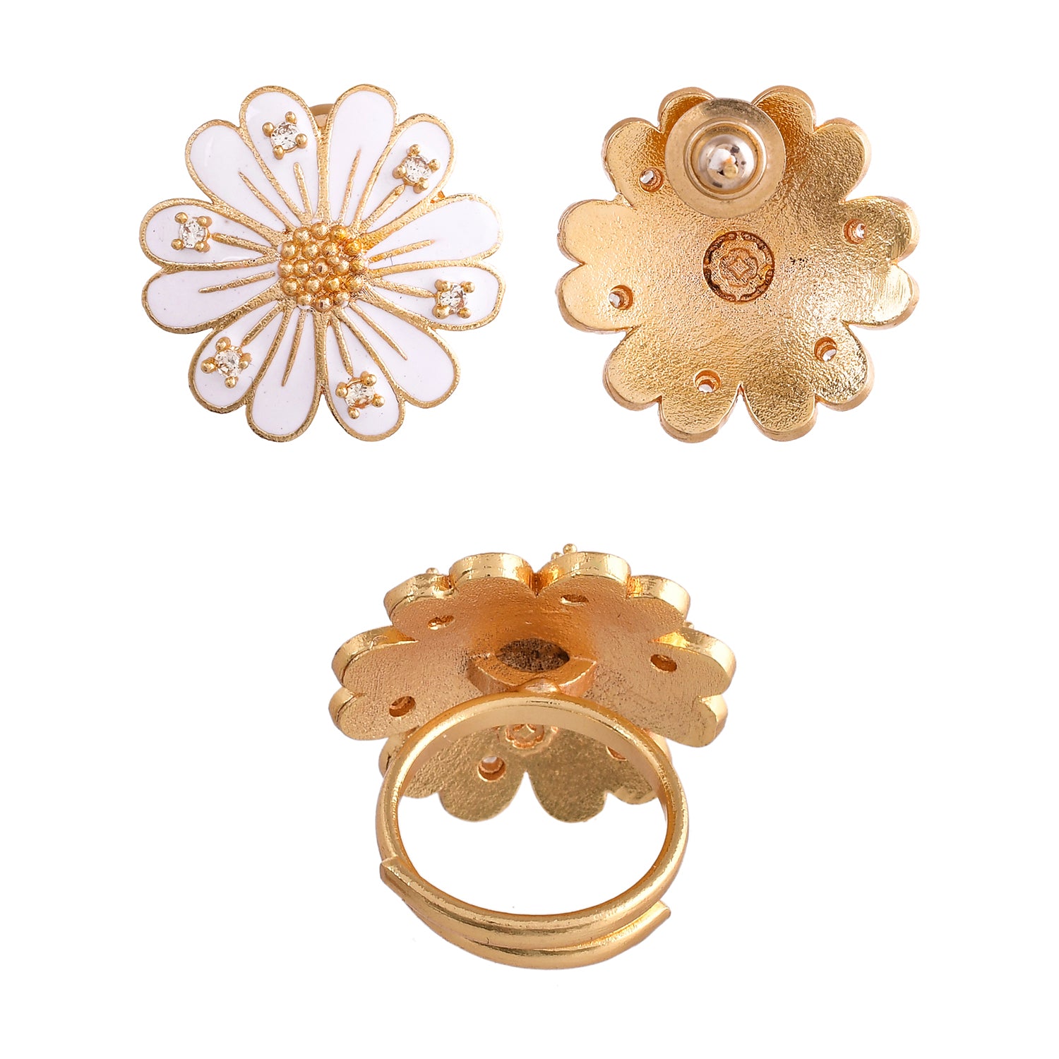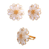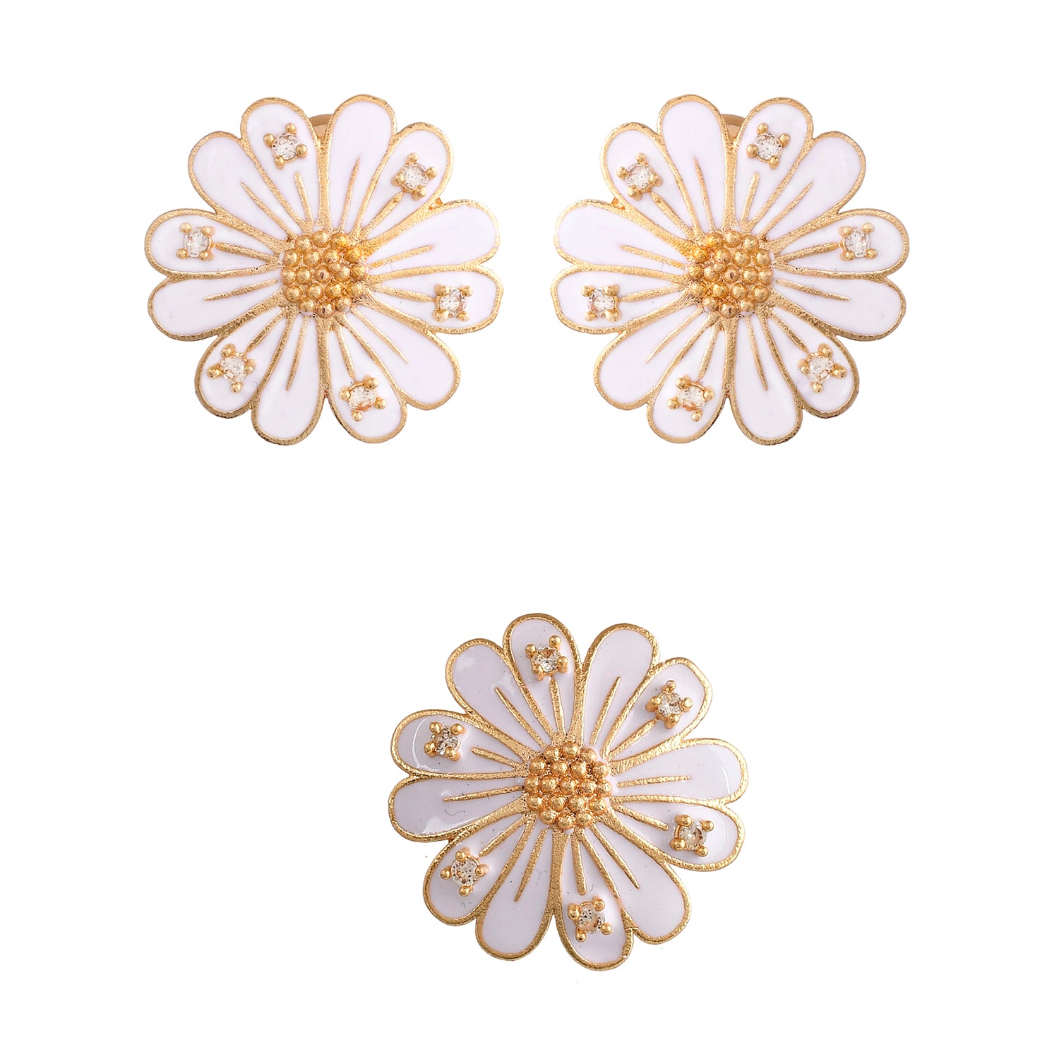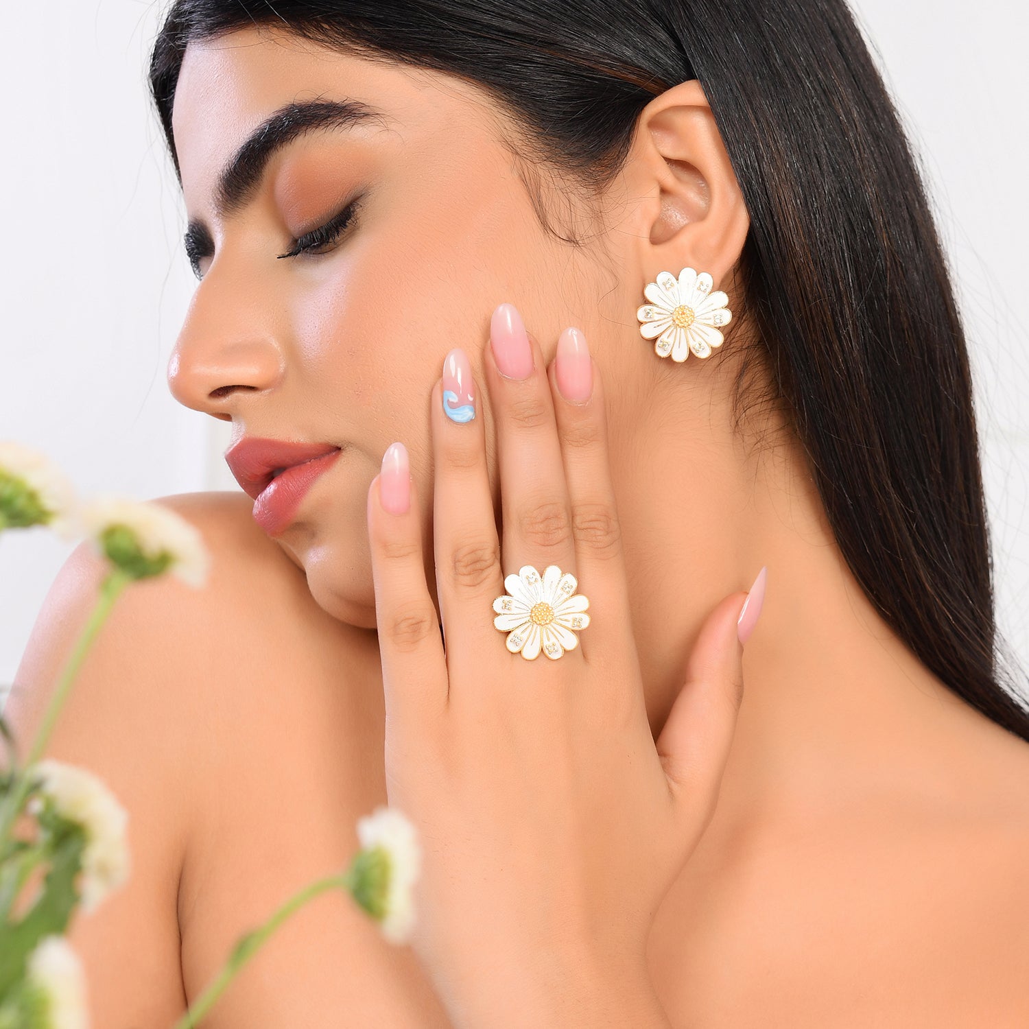 Flower Fantasy Pure Elegance Daisy White Earrings And Ring Combo