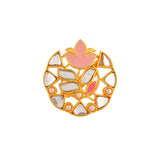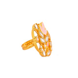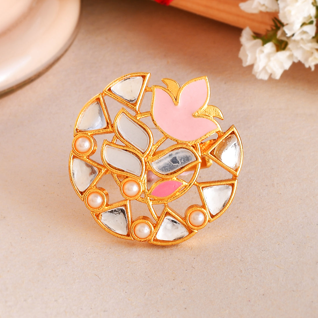 Enamelled cocktail ring, made from brass and yellow gold plated. White pearls adorned and good for formal looks of all kinds.