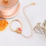 Forever More Pink Enamel Floral Motif Non-Piercing Nose Ring
