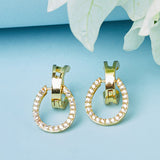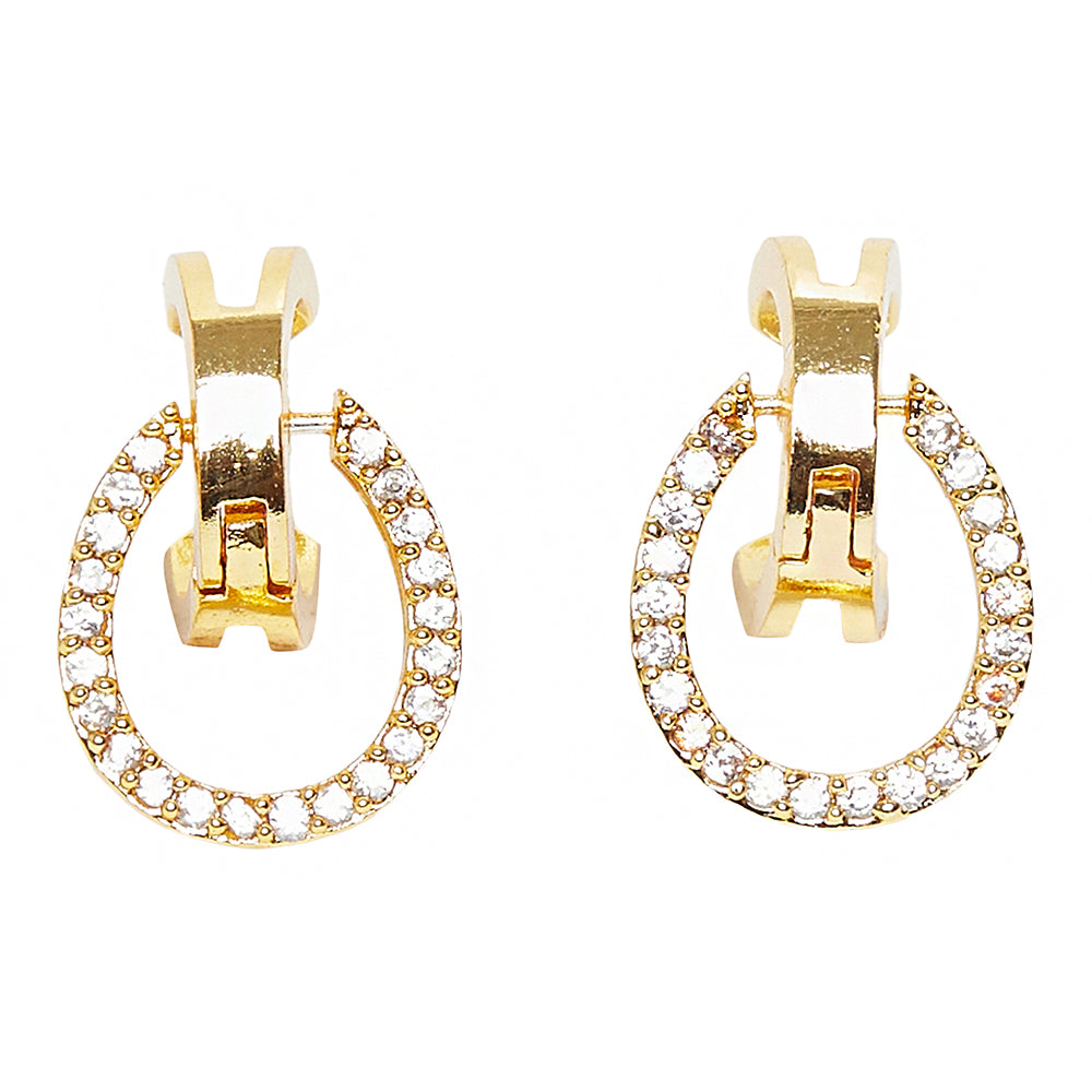 Brass CZ gemstones embellished earrings with gold tone plating. Pair with a casual kurta or dress.