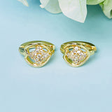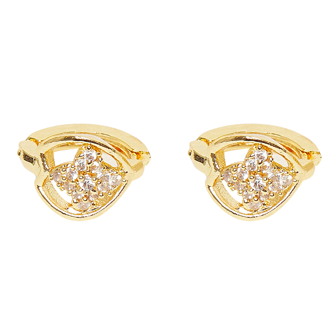 Add a dash of glamour to your look by decorating your ear lobes with this sparkling pair of earrings. Dainty and heavily embellished with white CZ, this brass pair is an absolute must-have for all fashionable divas, who love traditional jewelry. Wear it with a simple Anarkali Kurta.