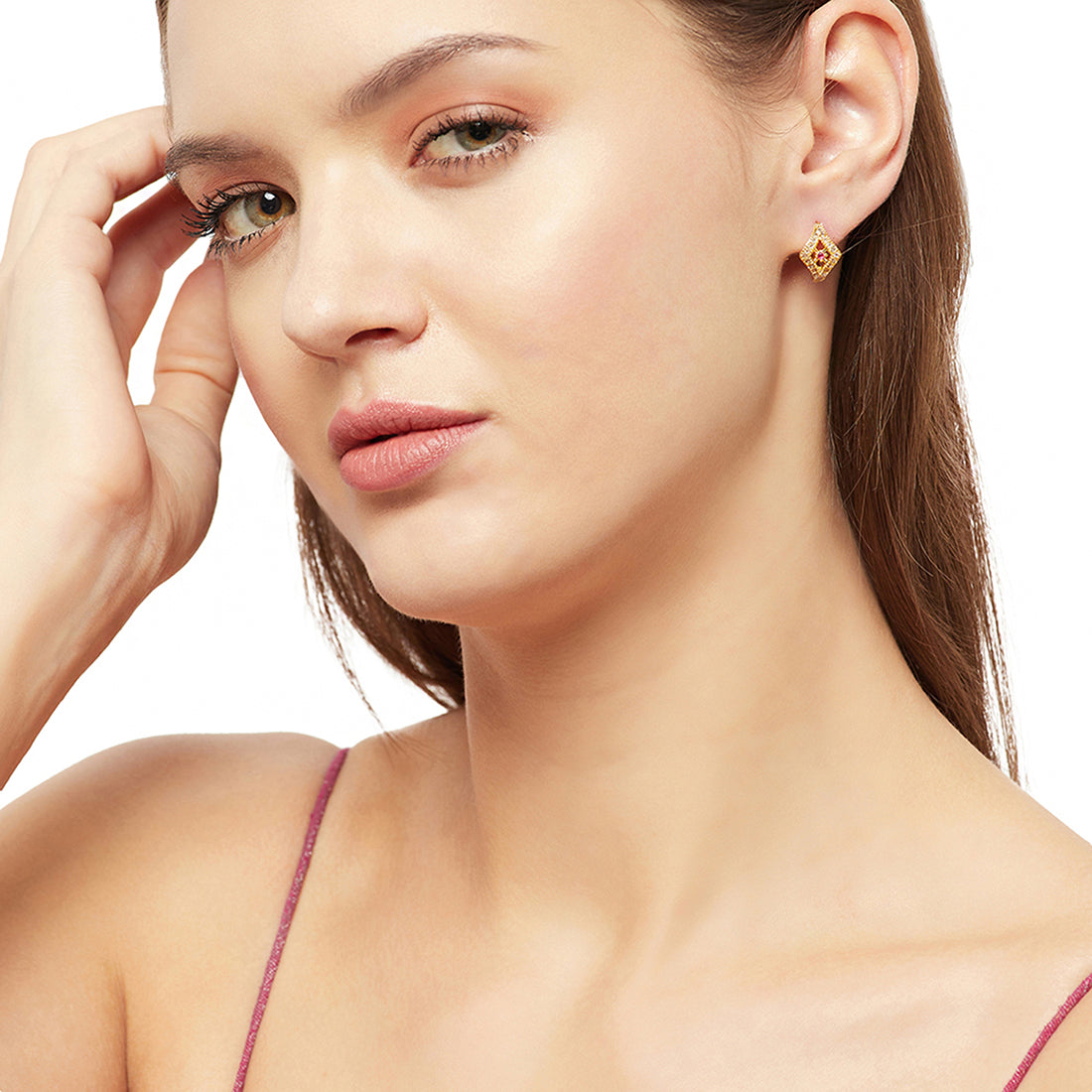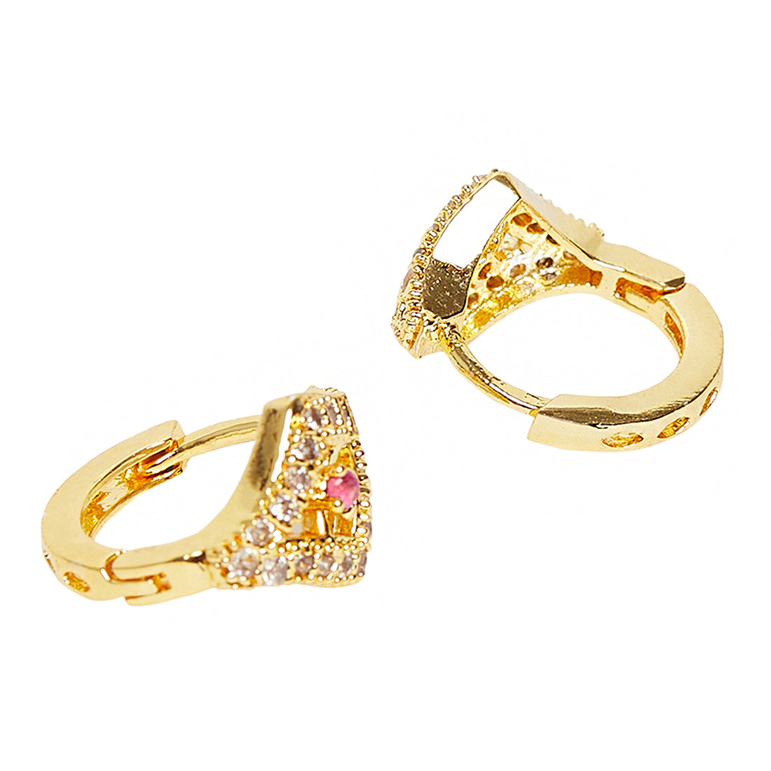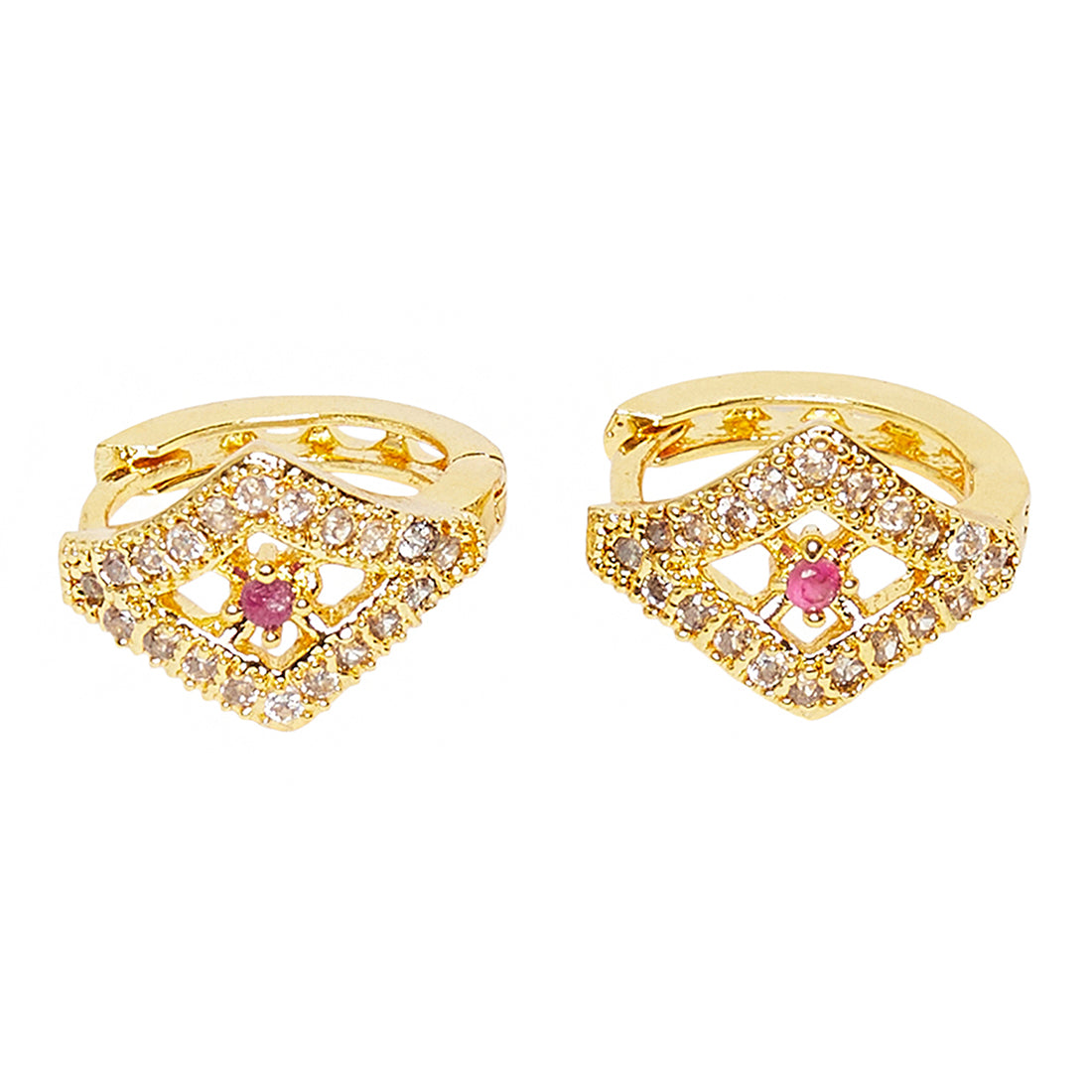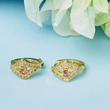 Add a pop of charm to your look with this pair of ethnic designer studs. This attractive pair will make you stand out in the crowd. Perfectly crafted, they have an adornment of cubic zirconia with a stunning gold finish that makes it more appealing.