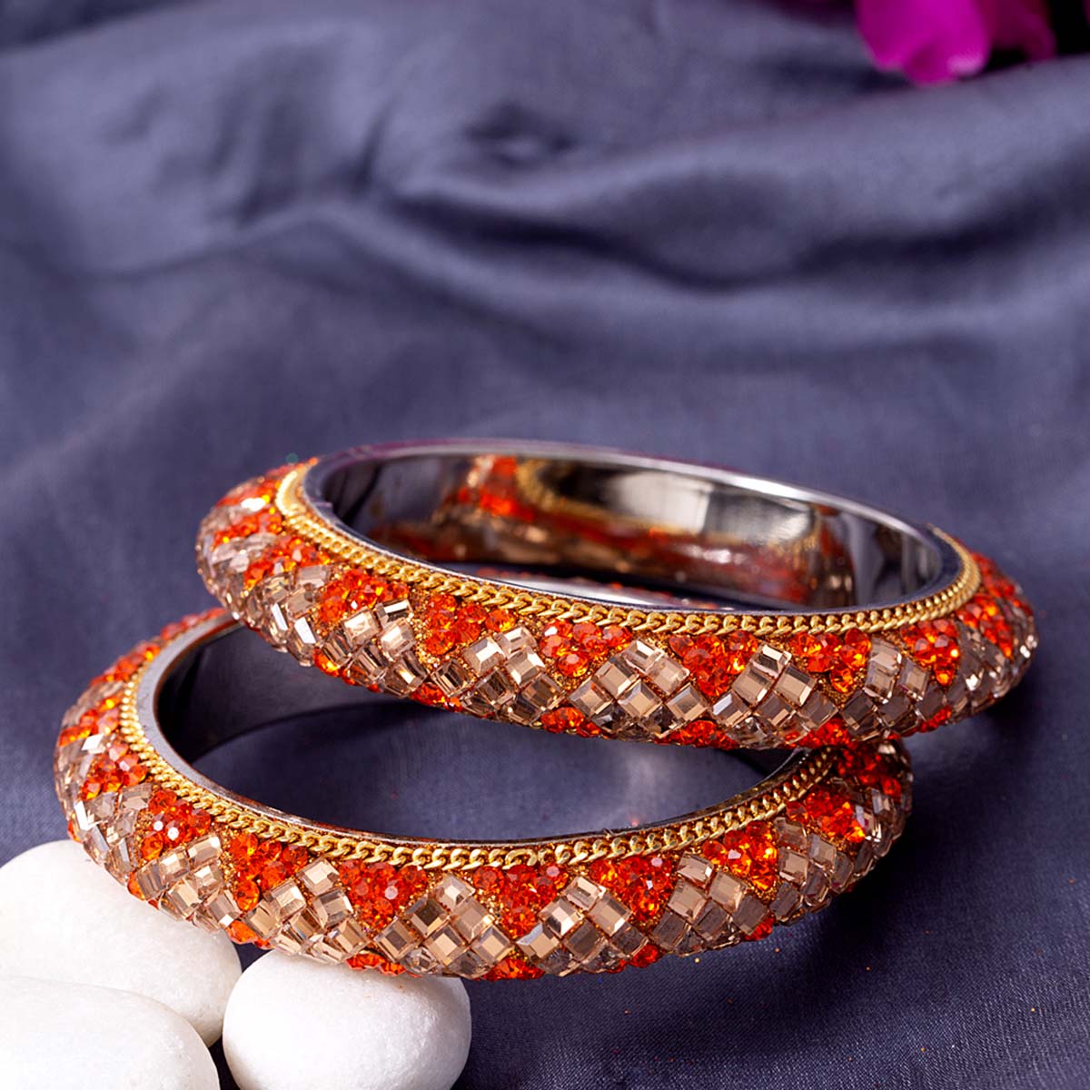 Gems studded surface lac inspired bangles. Made from alloy and two tone plated. Pair with a traditional saree.