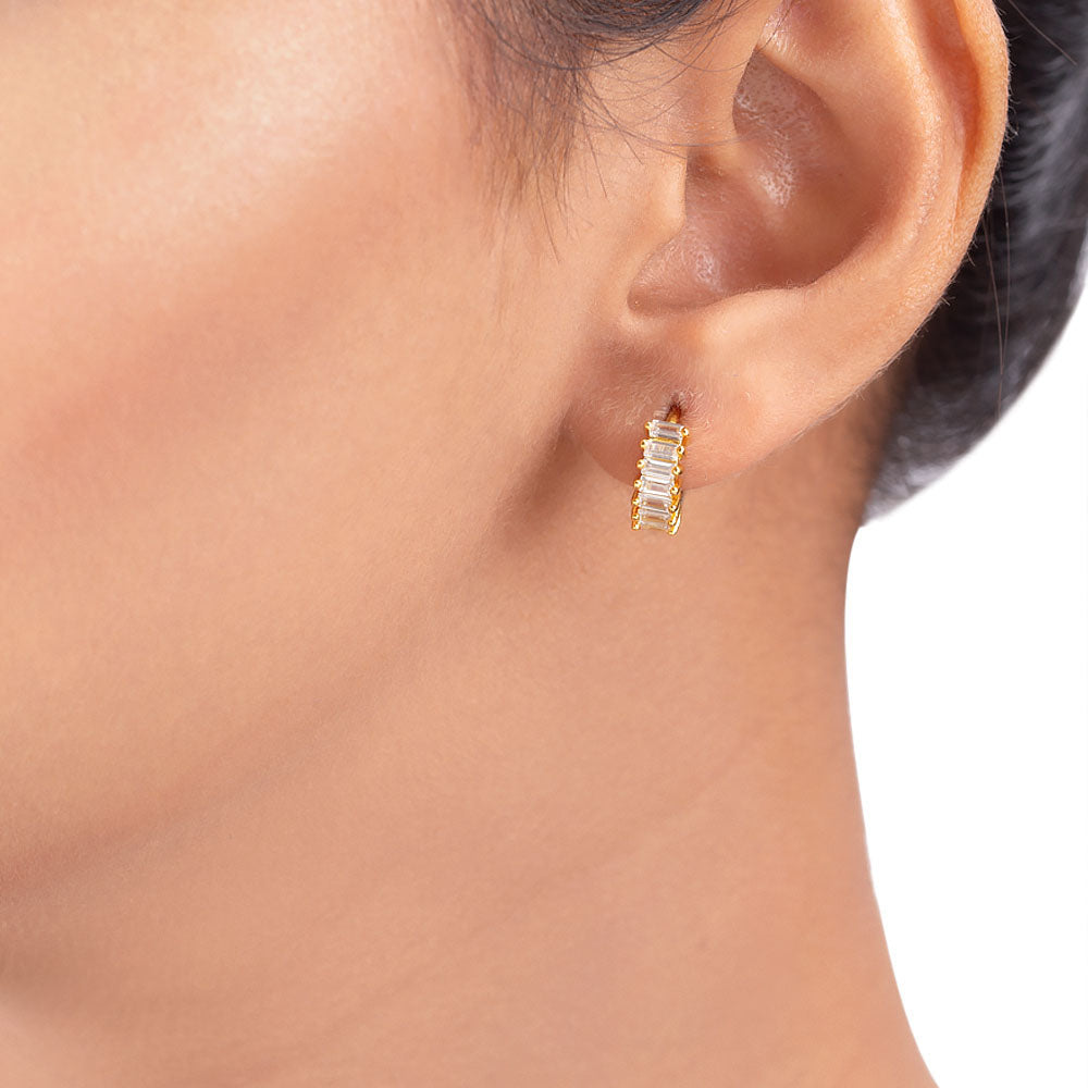 Stud style gemstones adorned earrings made from brass. Yellow gold plated, lightweight and comfortable. This piece of jewelry comes with the Voylla assurance of quality and durability. Caring for your fashion jewelry: We, at Voylla, take care of every piece of jewelry so that you don't spend hours caring for them.