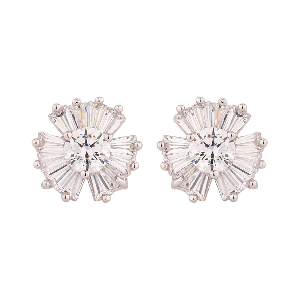 Stud style gemstones embellished brass earrings. Silver plated and a good match for casual wear. This piece of jewelry comes with the Voylla assurance of quality and durability. Caring for your fashion jewelry: We, at Voylla, take care of every piece of jewelry so that you don't spend hours caring for them.