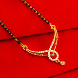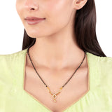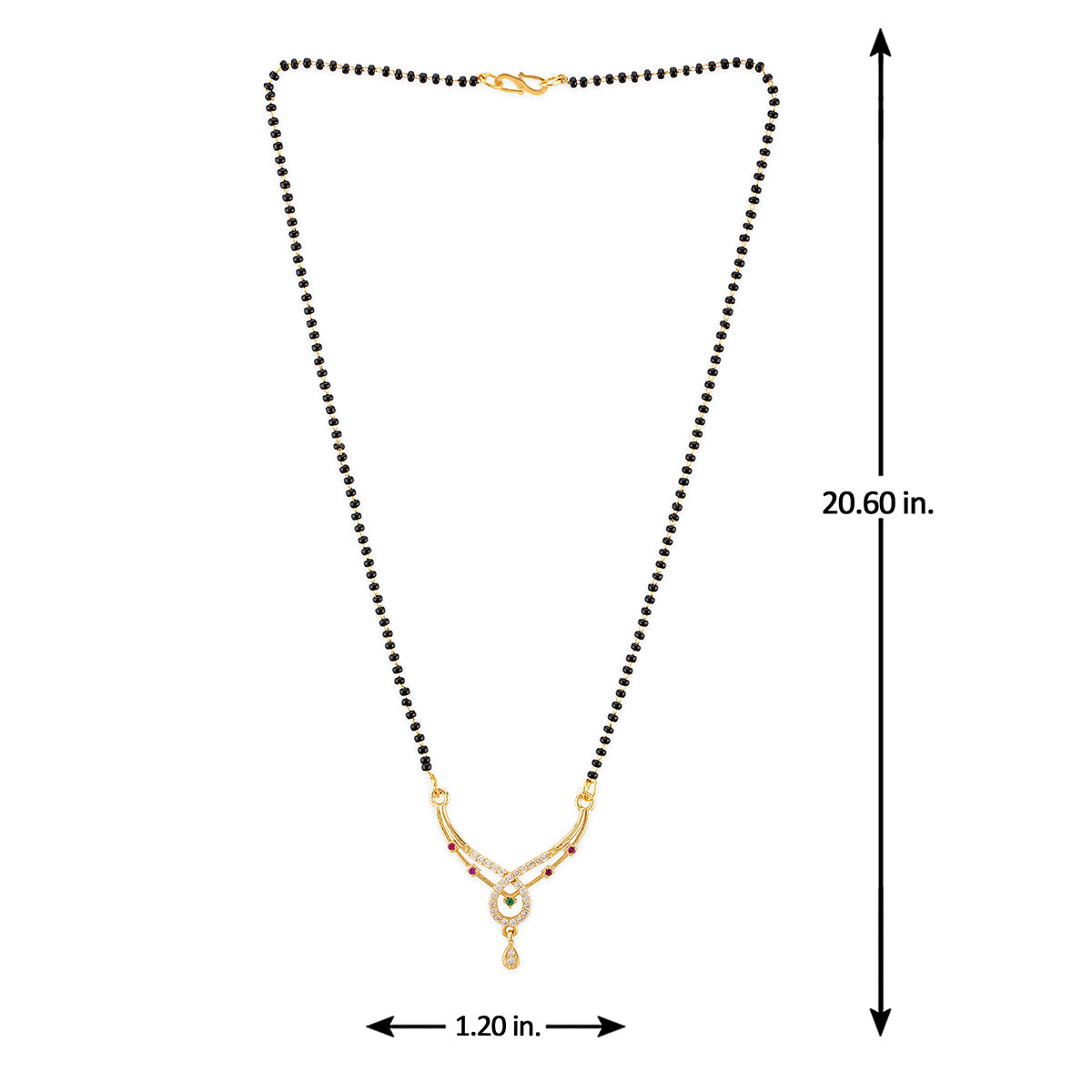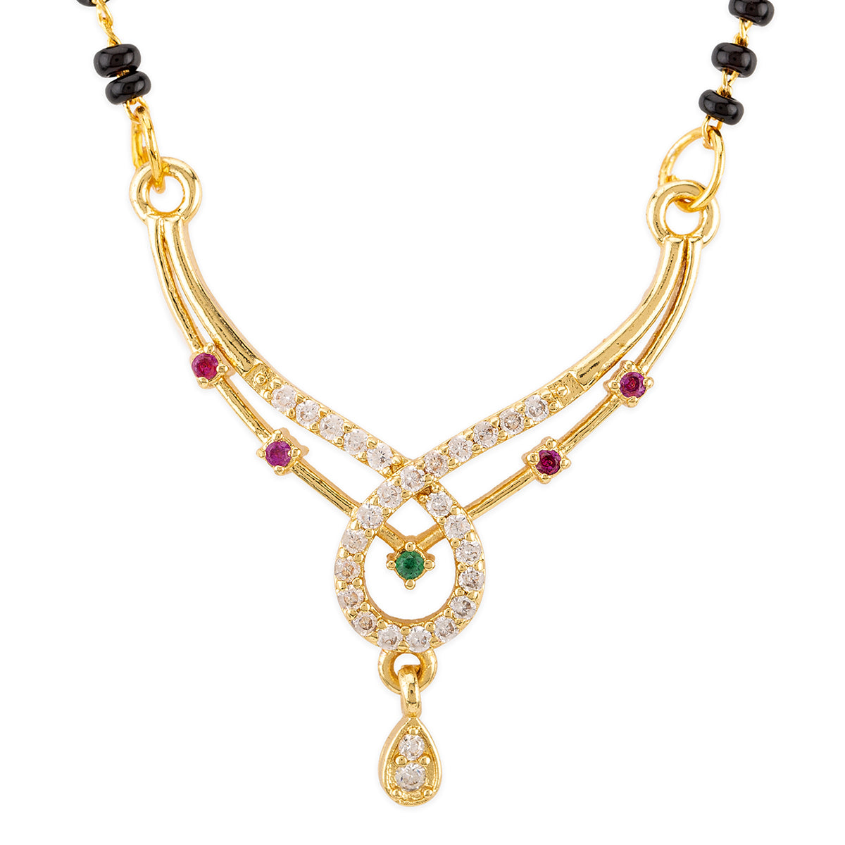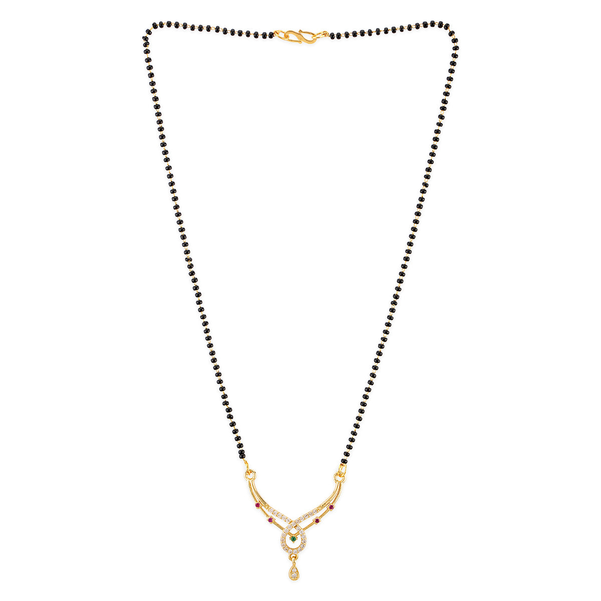Classic beaded mangalsutra made from brass. Embellished with coloured zirconia gemstones in various cuts. Yellow gold plated, lightweight and versatile.