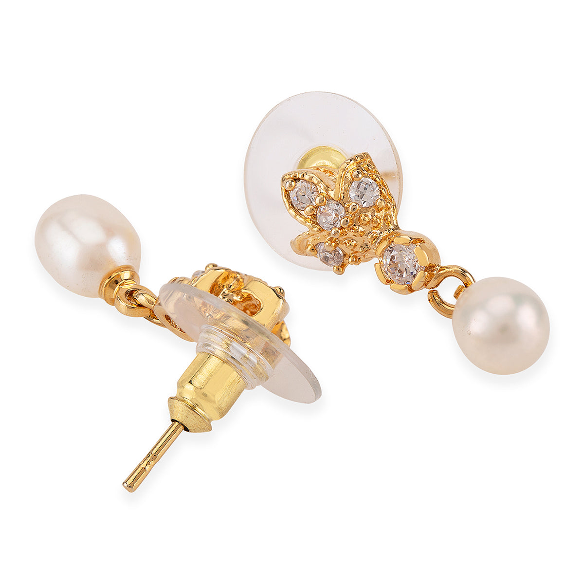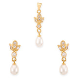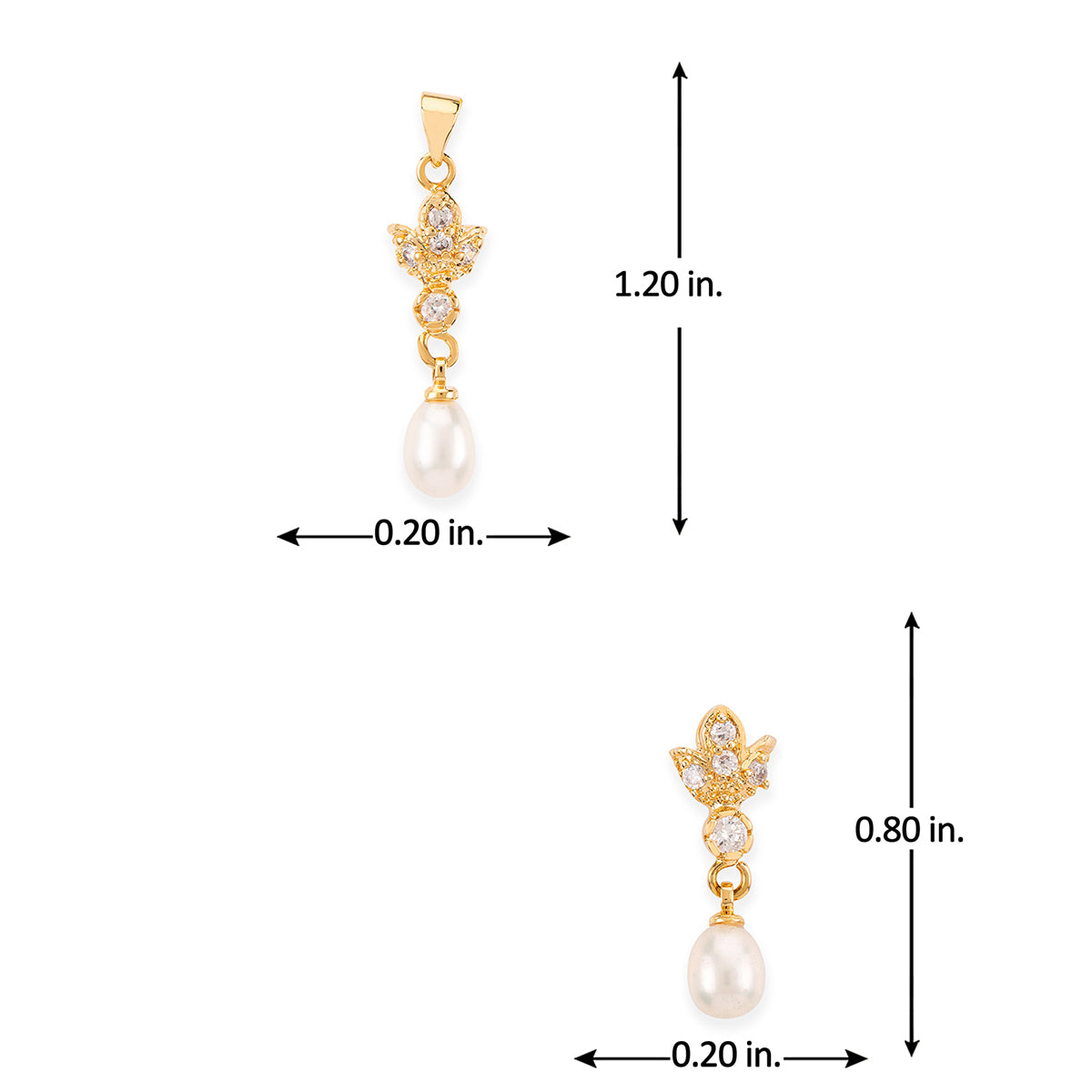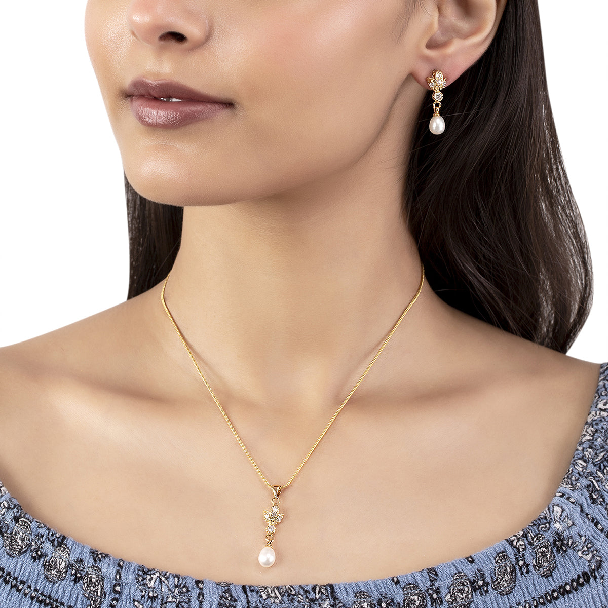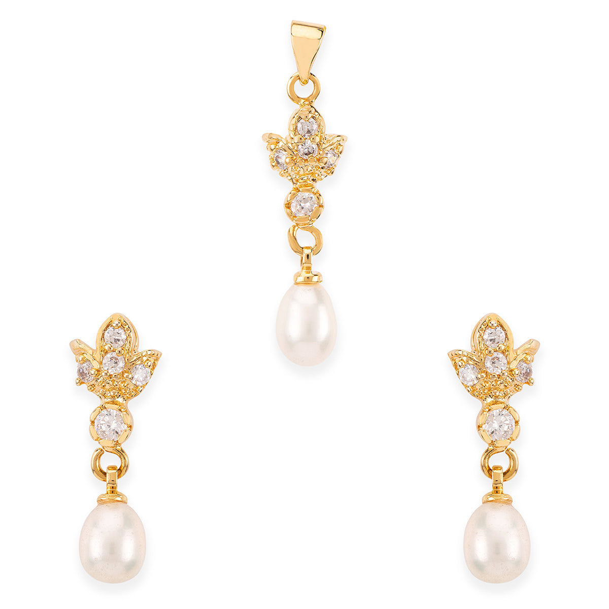This pendant set is perfect to add vibrance to any dress. The gold plating makes you look elegant and stylish while imparting a classy appeal. Crafted with high-quality brass and American Diamond stones, this set is thoughtfully designed with utmost precision to meet your every sparkle need. You can wear it as a piece of everyday jewelry, with office wear, or add it to your casuals for a classy and smart look.