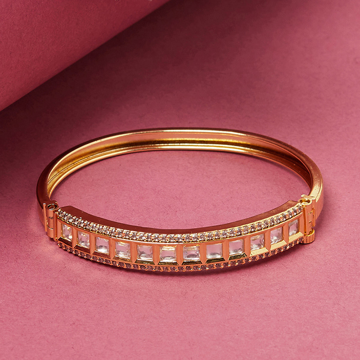 The bangle bracelet with immaculate work takes this bracelet to a whole new level. The stunning design and the gold plating impart a beautiful traditional look to this piece. Perfect for the traditional festive and family functions. Team it with a beautiful silk saree or a banarasi dupatta, it will definitely be a compliment magnet.