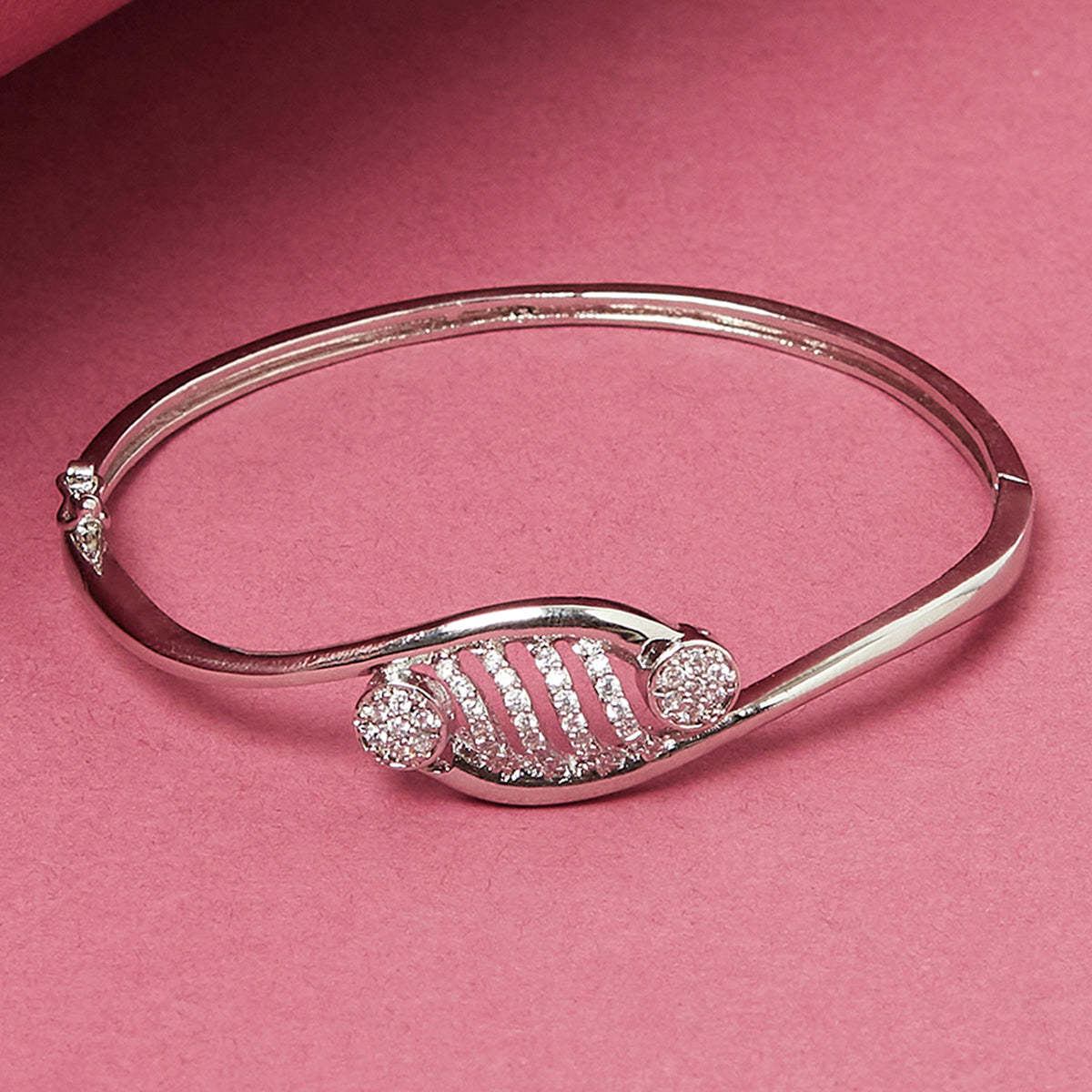 Supreme sparkle! The silver plated bracelet is a must have for our sparkly jewel lovers. This classic brass bracelet has been given a wonderful update with a striking motif, studded with high quality CZ's.