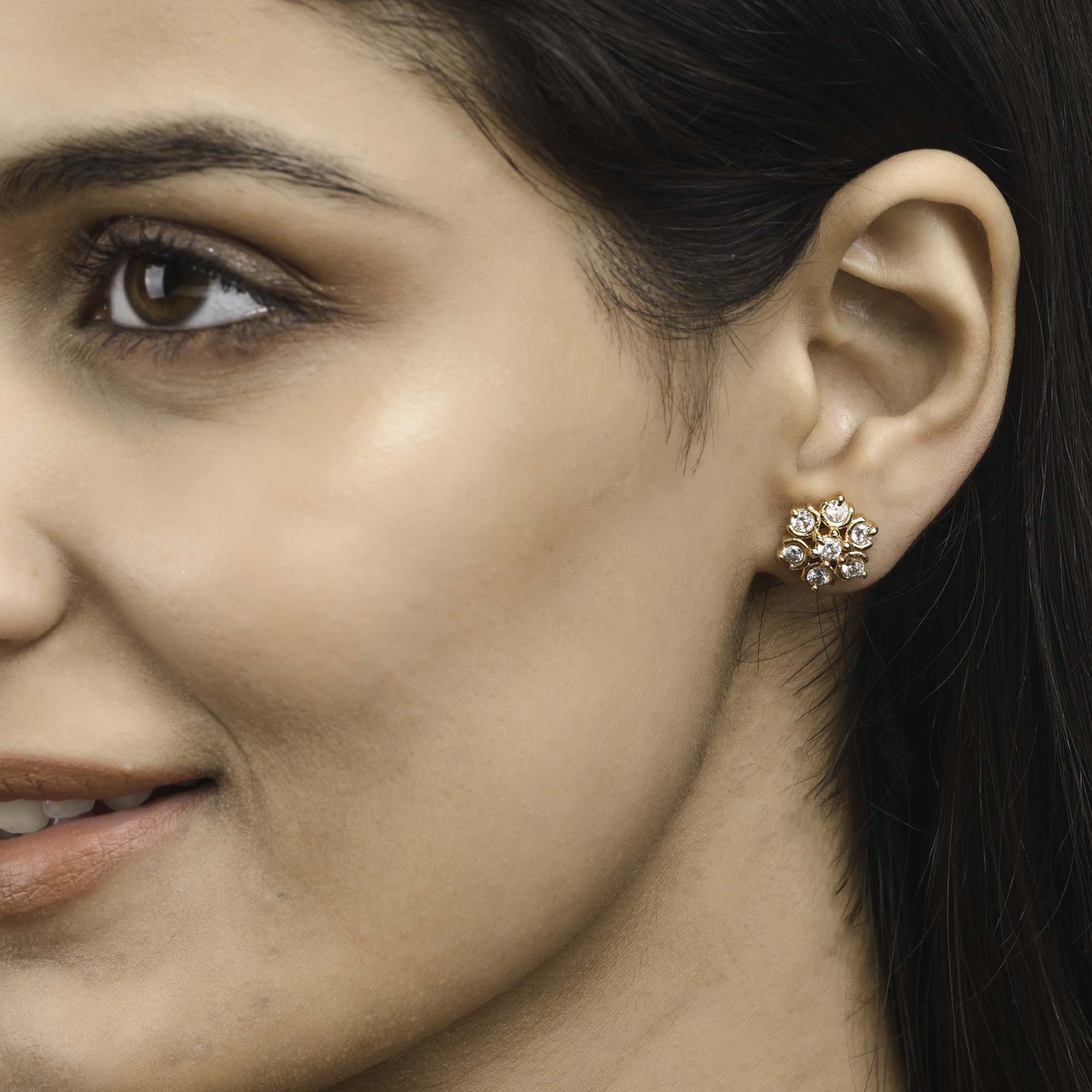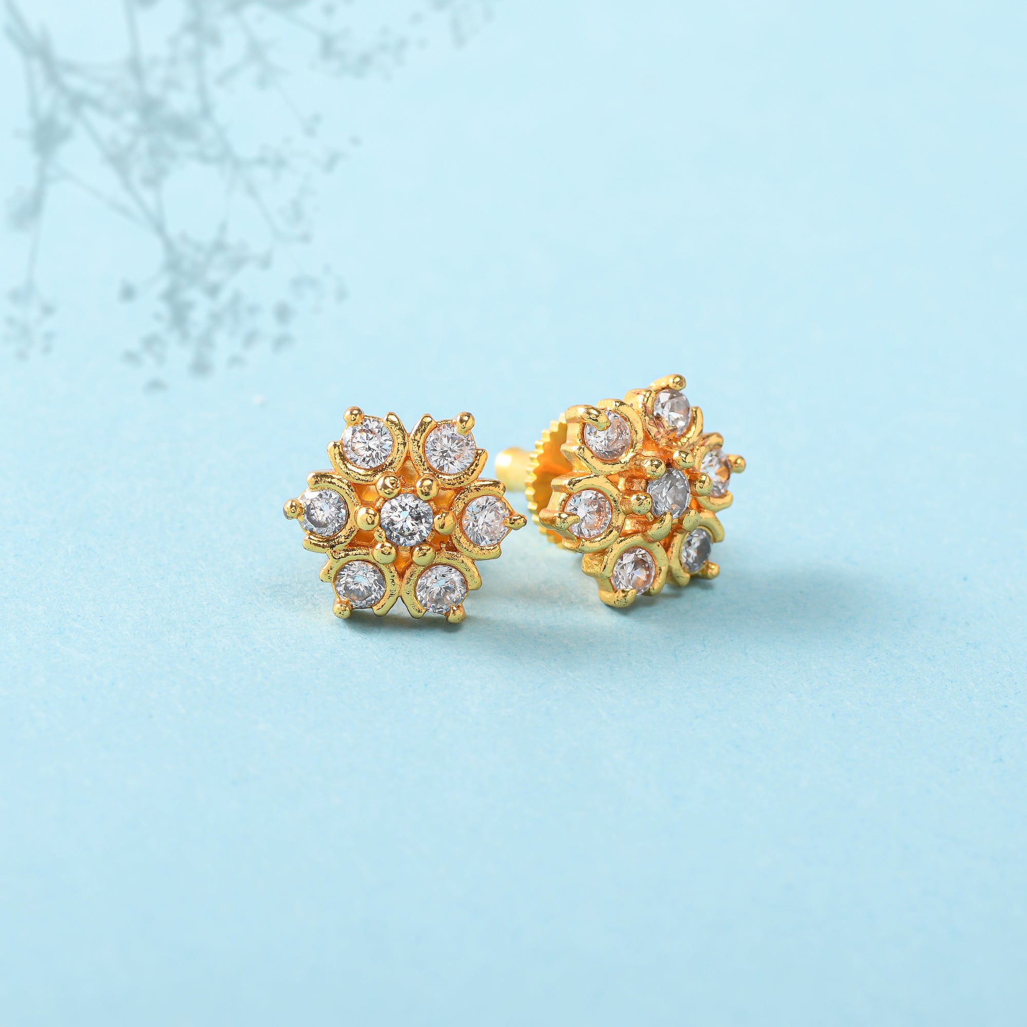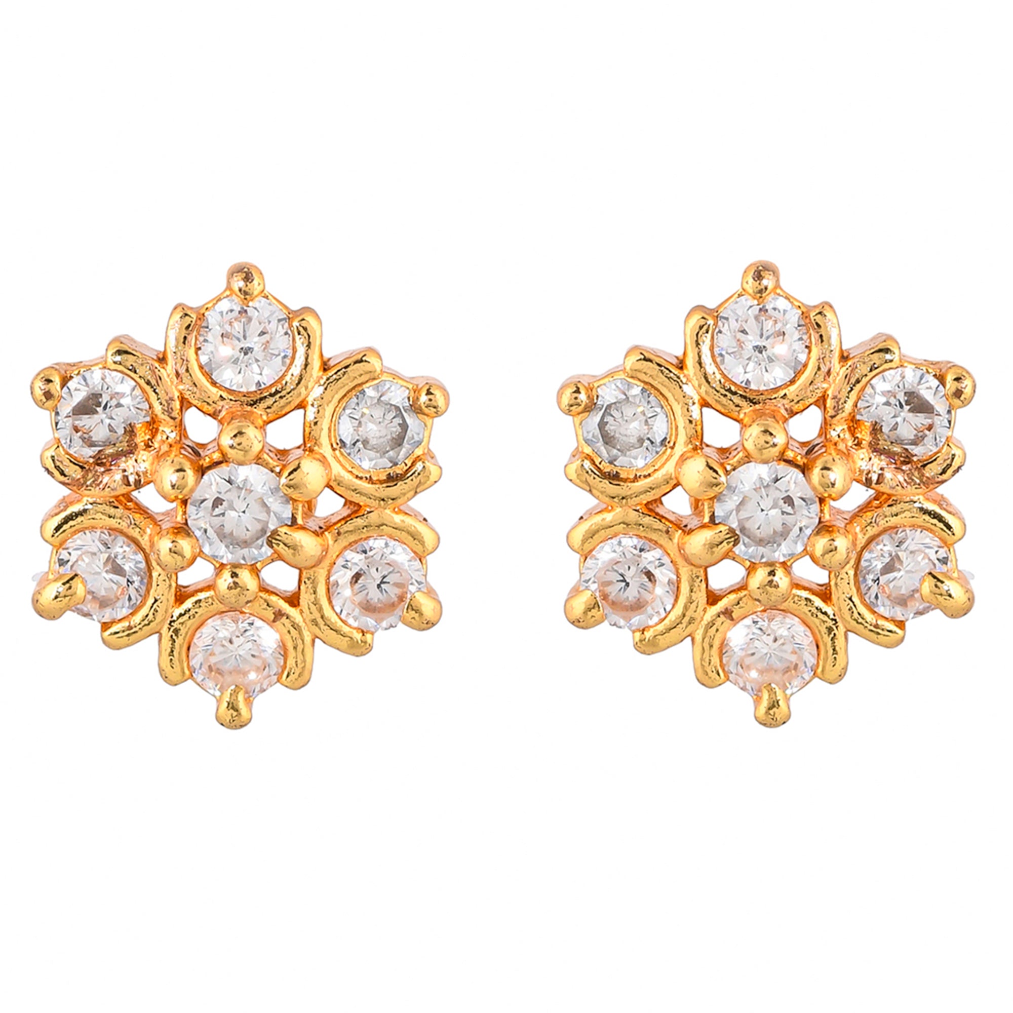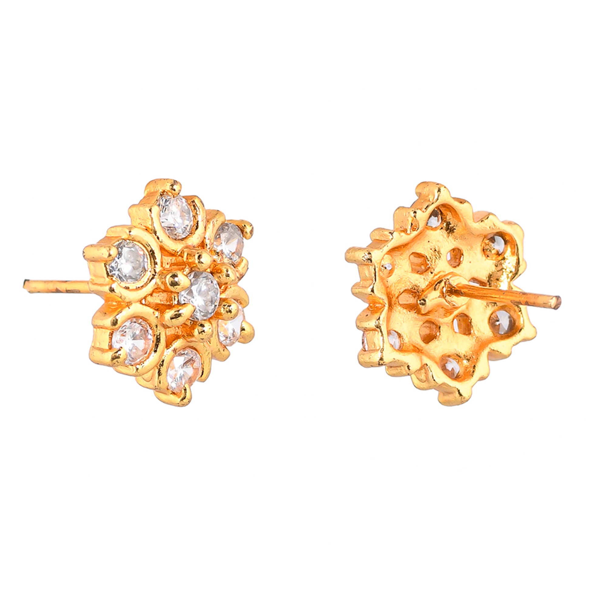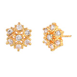 Adorn yourself with this beautiful pair of floral stud earrings. Embellished with stones, these earrings are made from brass and given a gold plating. This pair can go well with your formal or ethnic outfits.