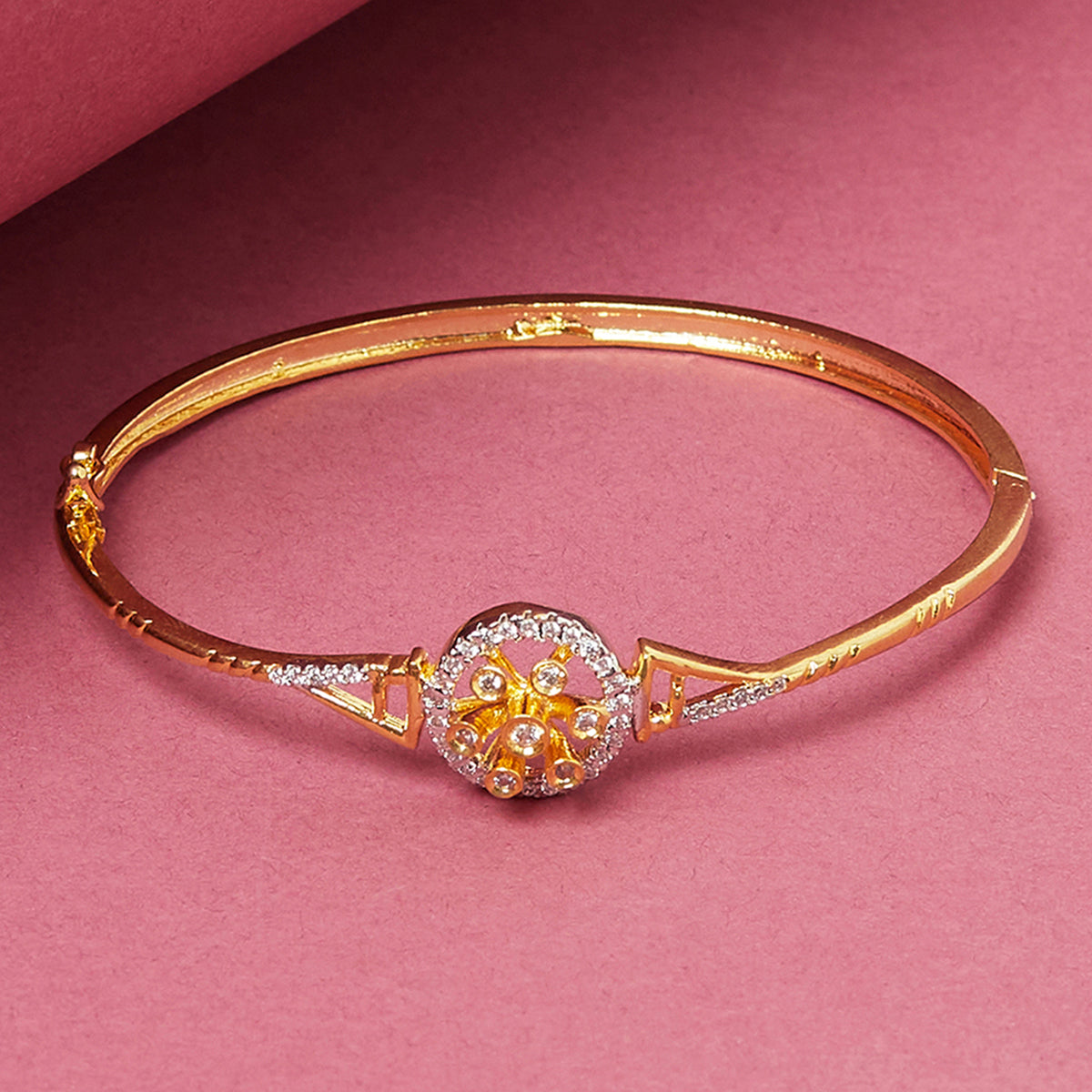 This elegant bracelet is crafted in gold plated brass and features a classy detailing with CZ stones. Pair this bracelet with any outfit to create a statement look.