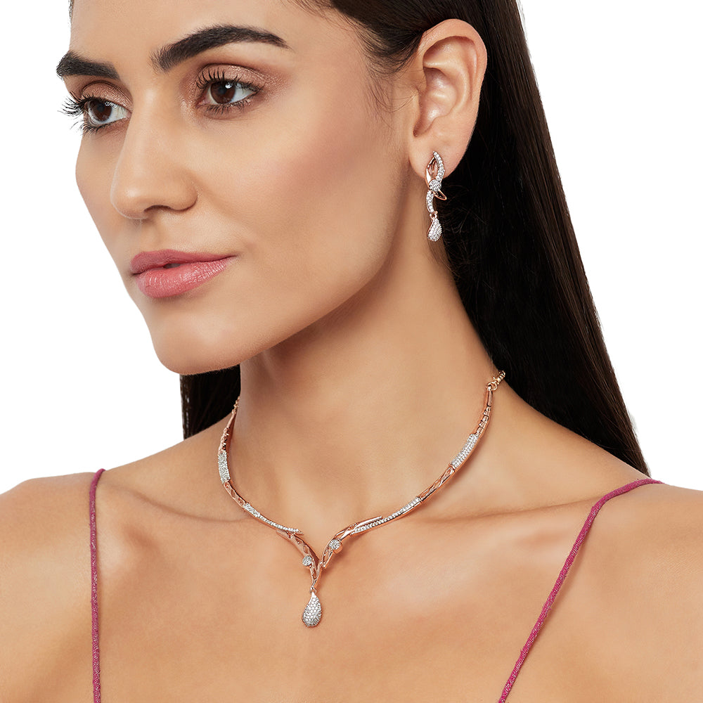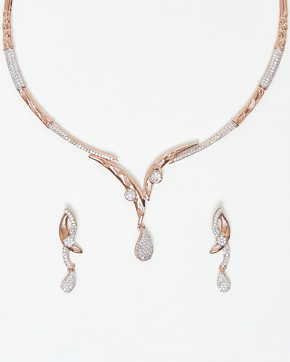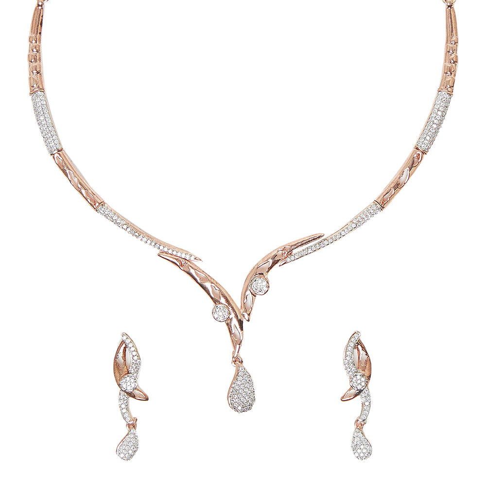 Sparkling Elegance Rose Gold Classy Necklace Set