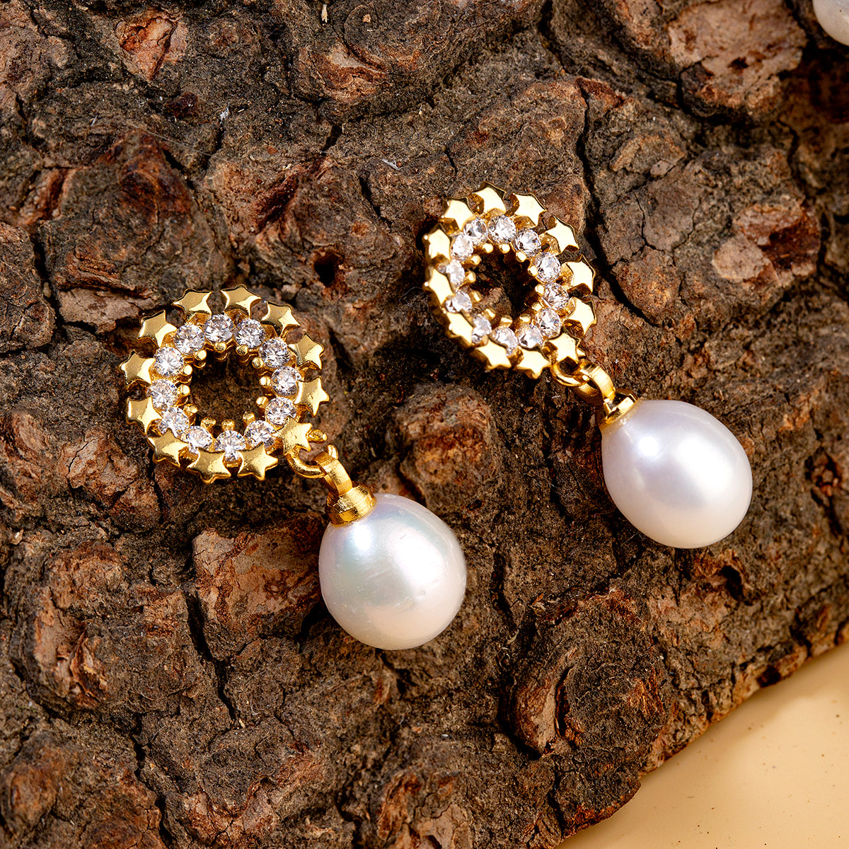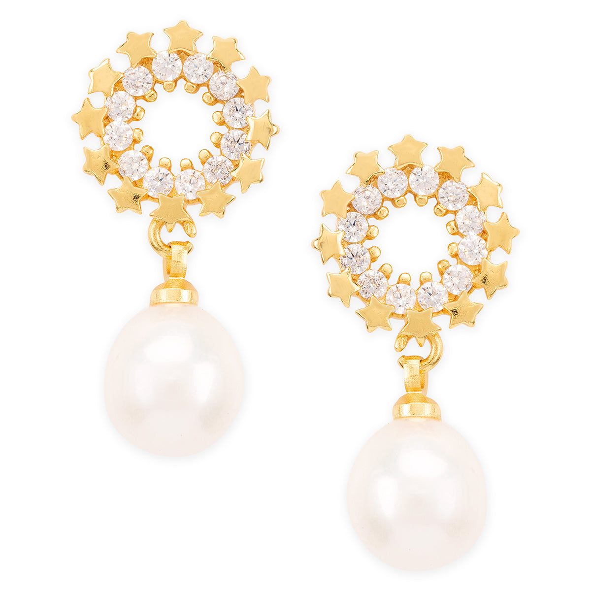 These gorgeous pearl earrings are for ladies who like to ooze class and royalty. The pearls look expensive while the glittering crystals give it a dash of royalty. The earrings can be teamed up with traditional outfits like a crisp saree or even with a western attire like an off-shoulder gown.