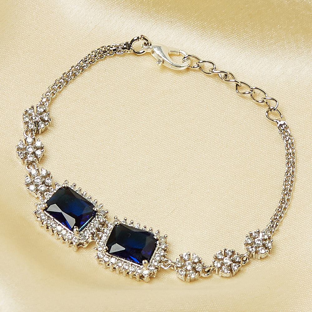 Sparkling Elegance Silver Plated Blue CZ Studded Bracelet