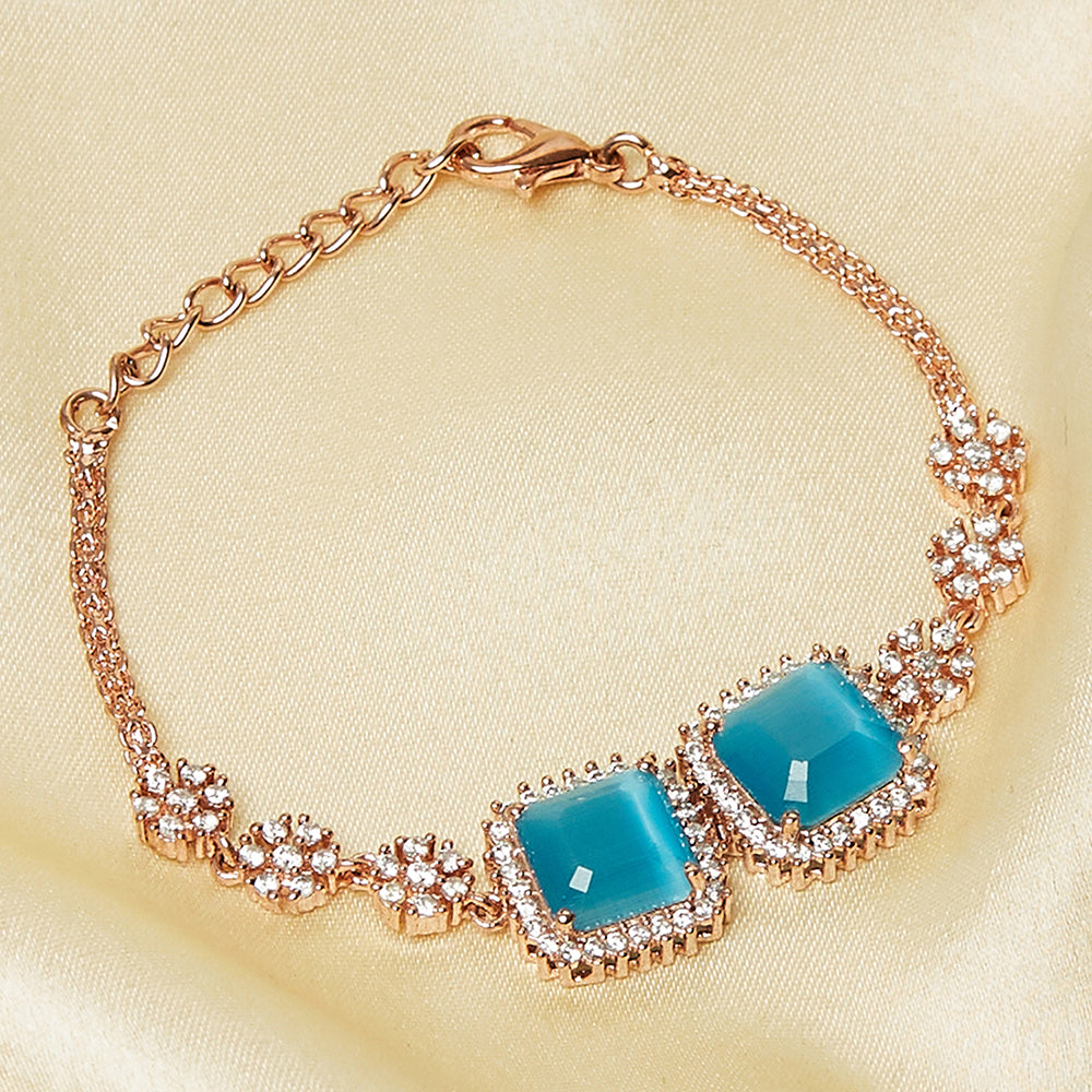 With the bond of love this brass made rose gold plated bracelet is specially designed for enhancing the beauty of women with blue coloured stone. This brass material jwellery is very durable, easy to handle and last for decades with minimum care.The bracelet is designed with that in mind so it can be adjusted according to your wrist size.