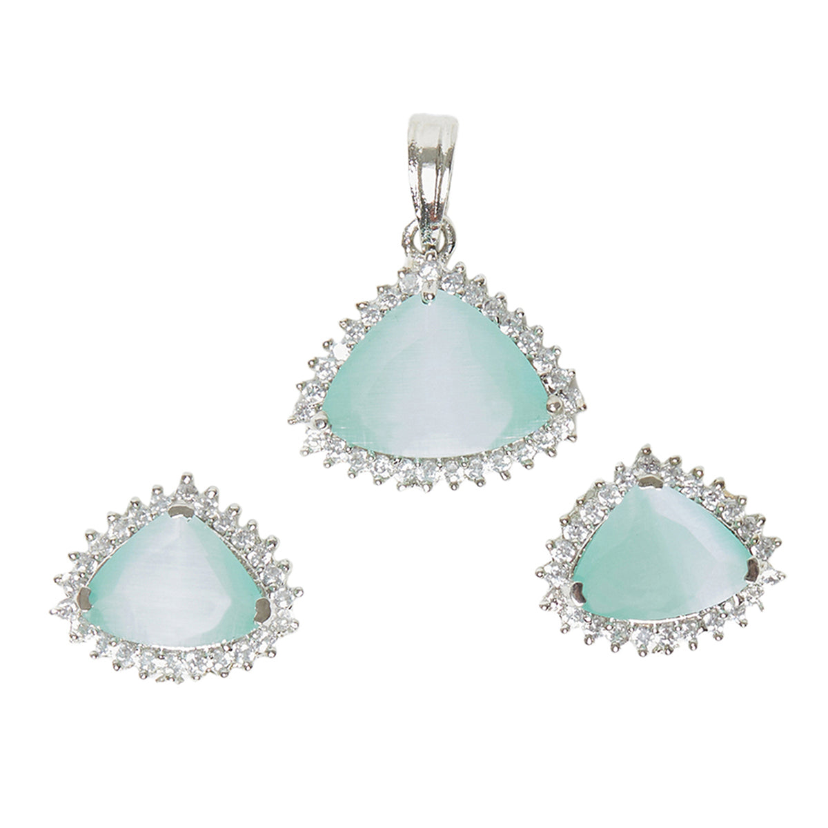 Adding another piece of royalty to its latest collection, Sparkling Elegance introduced a sea-green-colored stone pendant set. The Brass material and the unique design make this piece stand out from the queue. Show off your adorable attires with this unique design crafted from Sparkling Elegance.