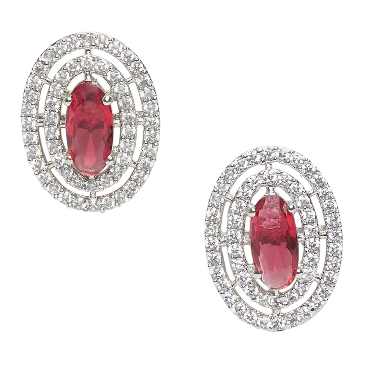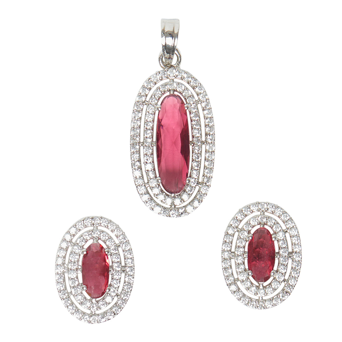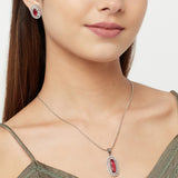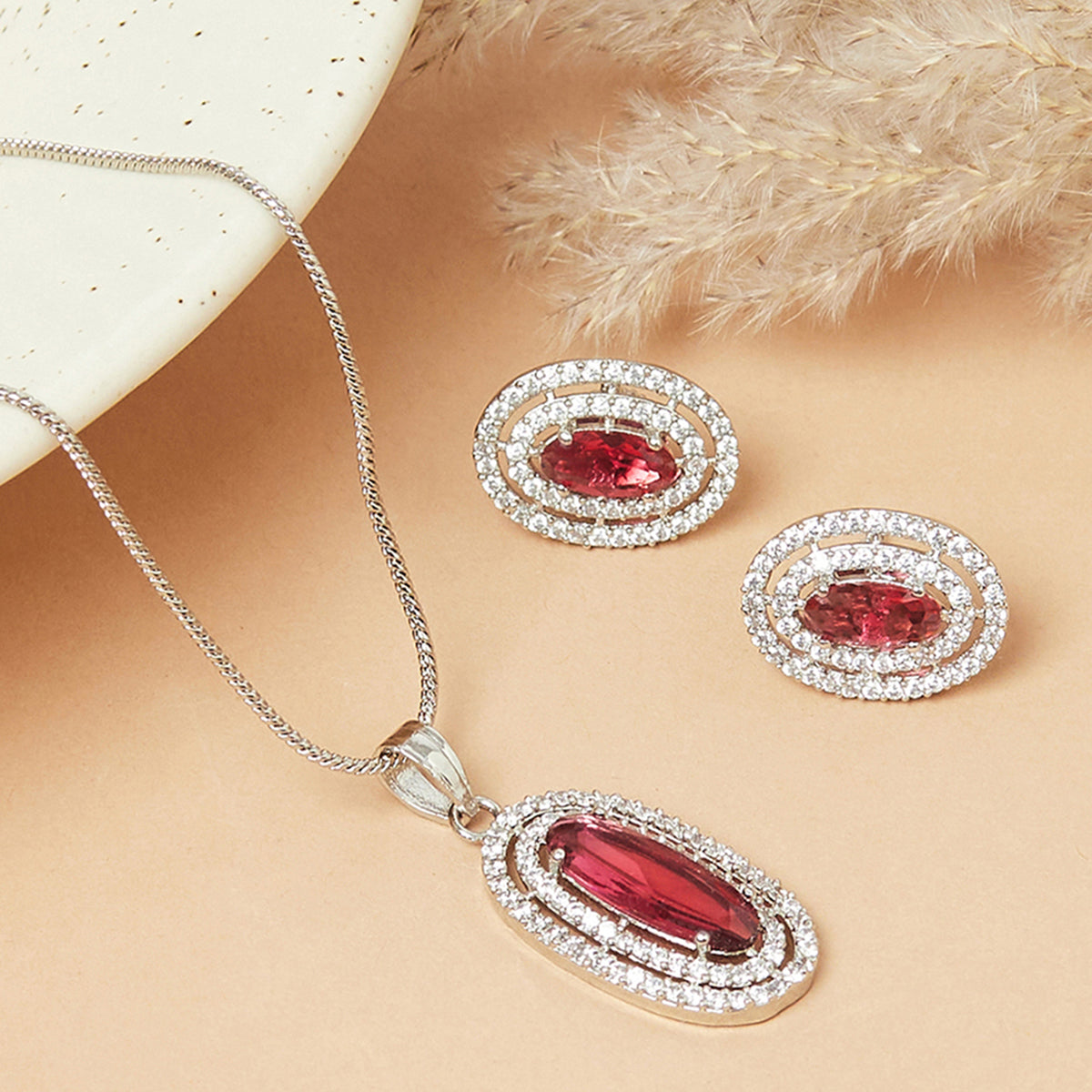 Sparkling Elegance Red Stone Silver Plated Pendant Set