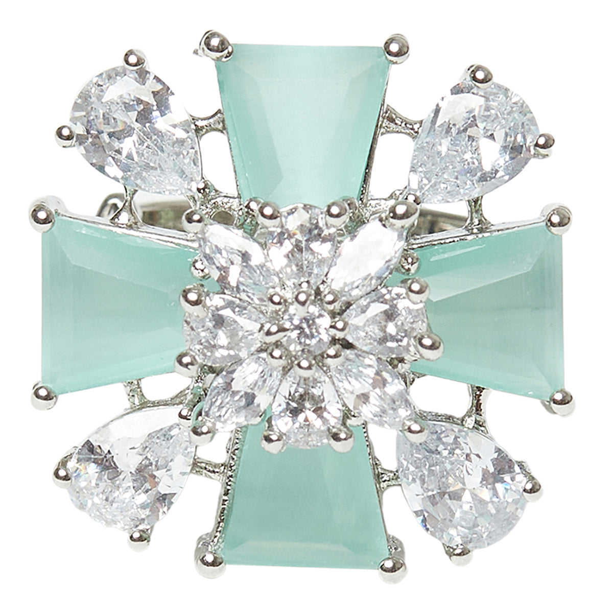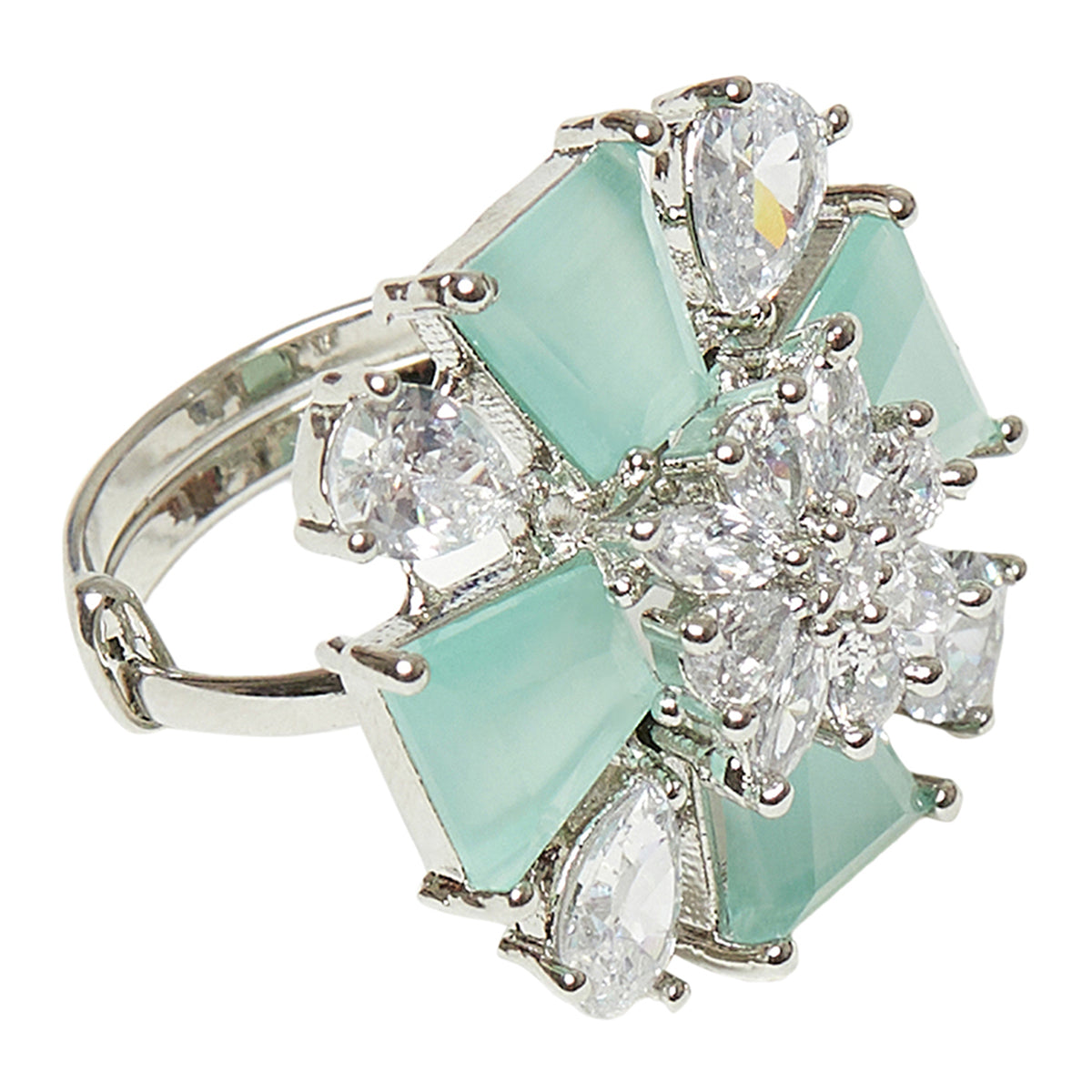 Sparkling Elegance women Launched its new collection of silver pleated rings fabricated with sea green colored stones. The stones are crafted in an adorable flower peal design that depicts royalty. A complimentary sea-green brass pendant set with the ring will complete a women's jewelry box.