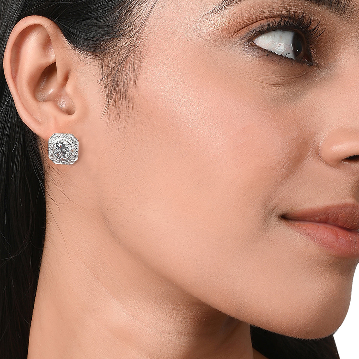 Get your hands on these feminine pair of 925 sterling silver plated ear studs embellished with cz stones. These are perfect with any party attire!!