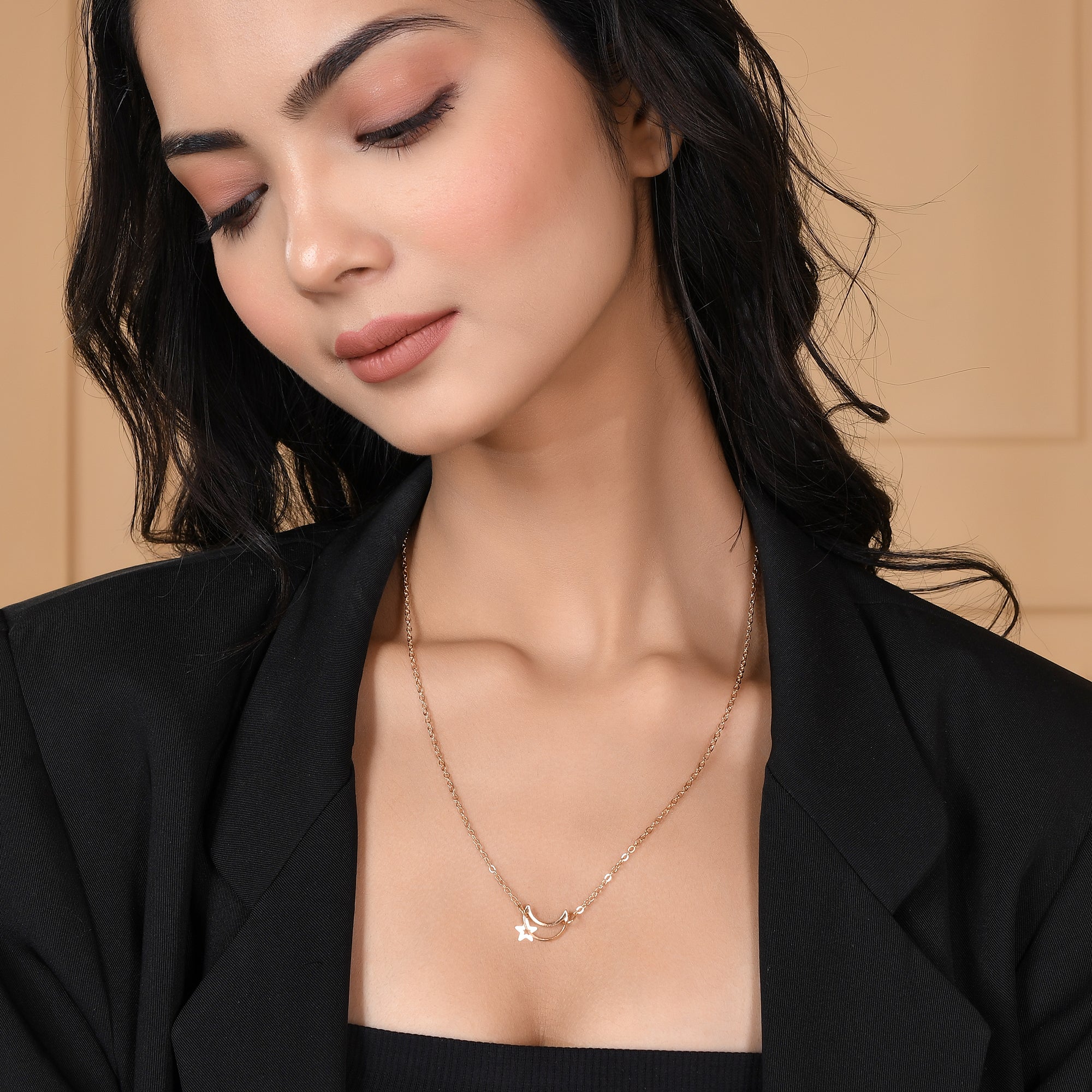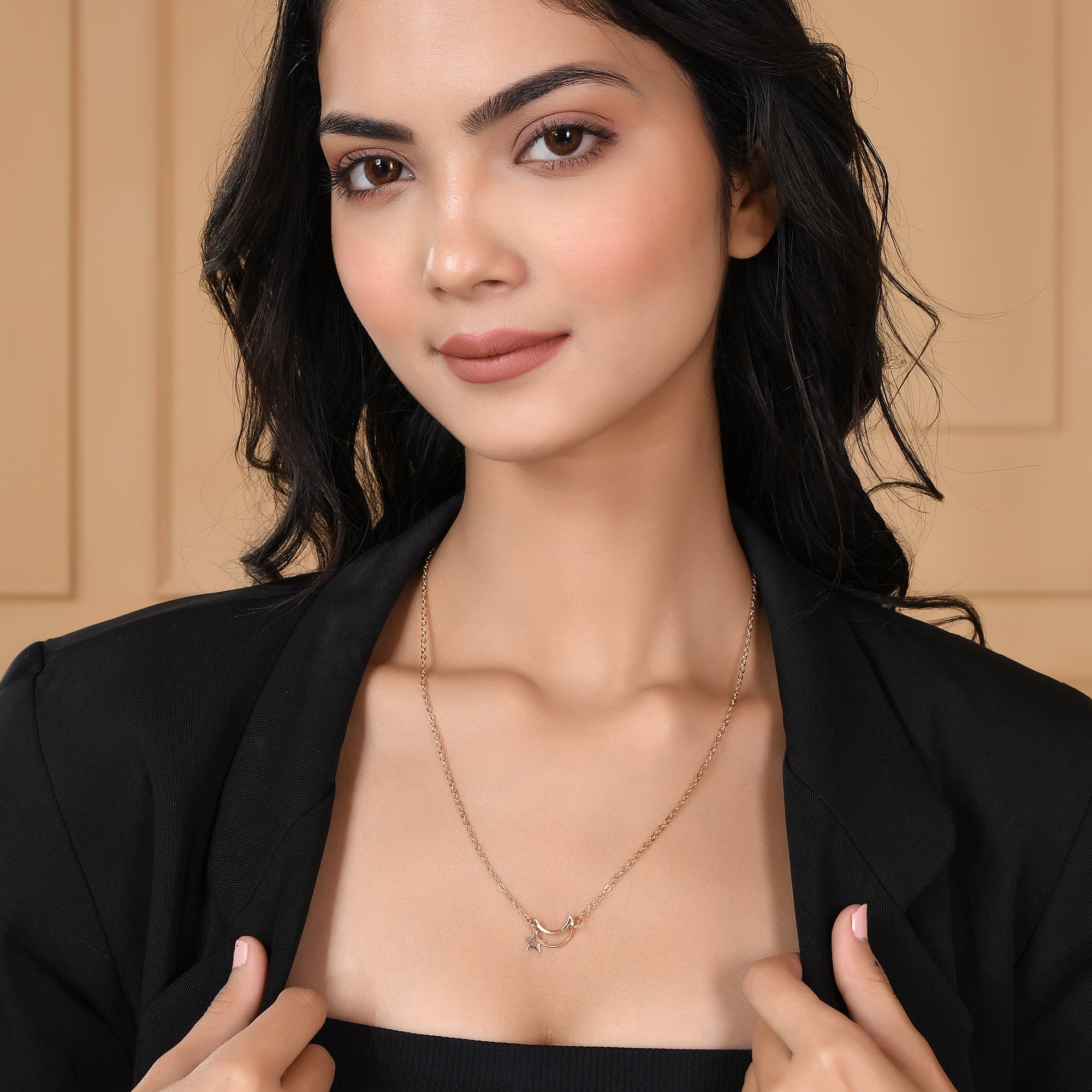 Update your look with this delicate crescent moon and halo star pendant necklace. Let the light of this crescent moon and star necklace guide you whenever things get tough. A thoughtful gift for you and your dear ones. Style Tip: Achieve the look of a stacked necklace without any tangles.