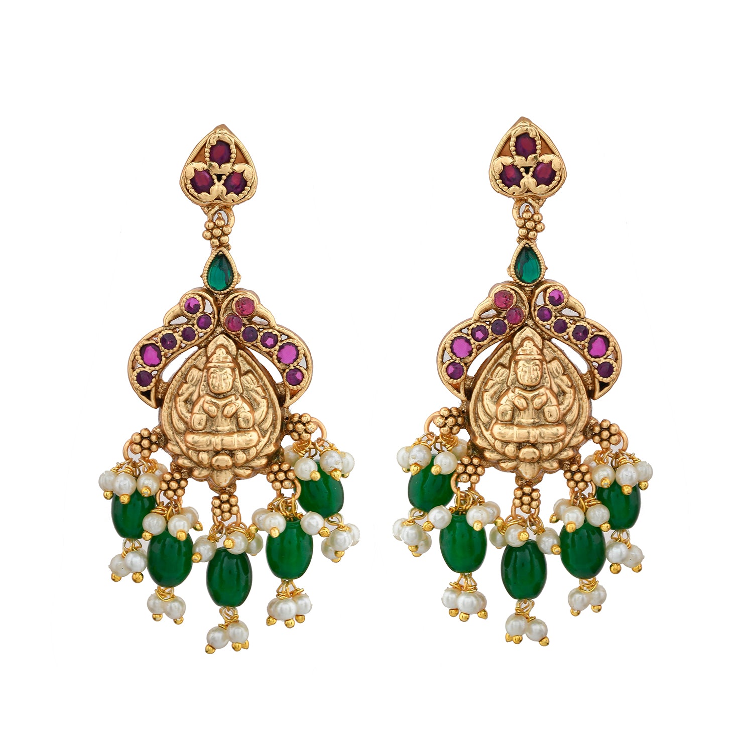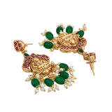 The Devika Shringar Temple Choker Set is a masterpiece that exudes traditional Indian elegance. This exquisite choker, crafted from high-quality alloy and plated with gold, features intricate designs of deities and motifs, adorned with vibrant green and white beads, and sparkling kundan stones. As part of the Gold Opulence collection, this choker set is perfect for weddings, festive occasions, and religious ceremonies, adding a touch of royal elegance to any outfit. The rich gold color and detailed craftsmanship make it a statement piece that can be paired with traditional sarees, lehengas, or even contemporary fusion wear. This set makes an ideal gift for women on occasions like Valentine's Day, Diwali, Rakshabandhan, Christmas, and New Year, symbolizing love and prosperity. Whether for a mother, sister, wife, girlfriend, or friend, this choker set is sure to be cherished and admired.