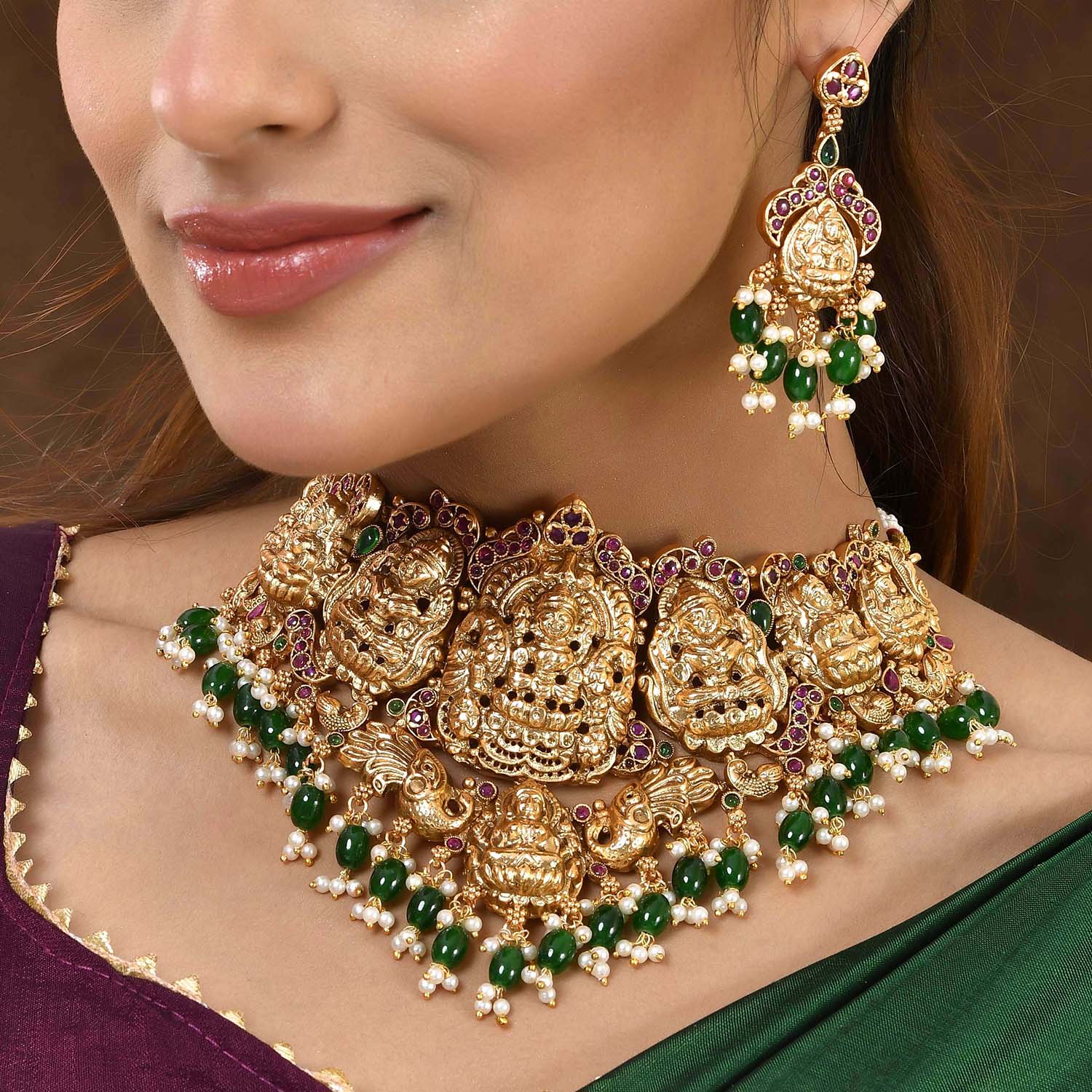 Gold Opulence Devika Shringar Temple Choker Necklace Set