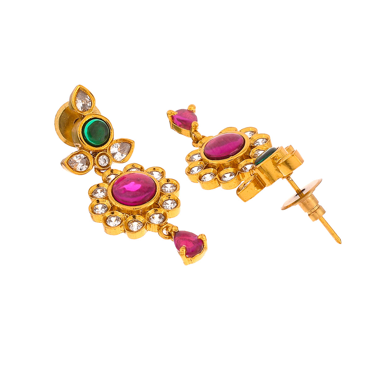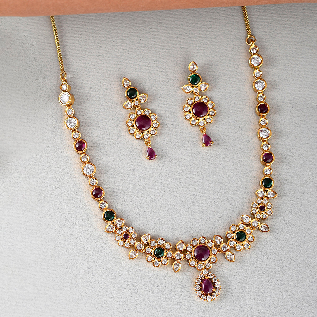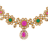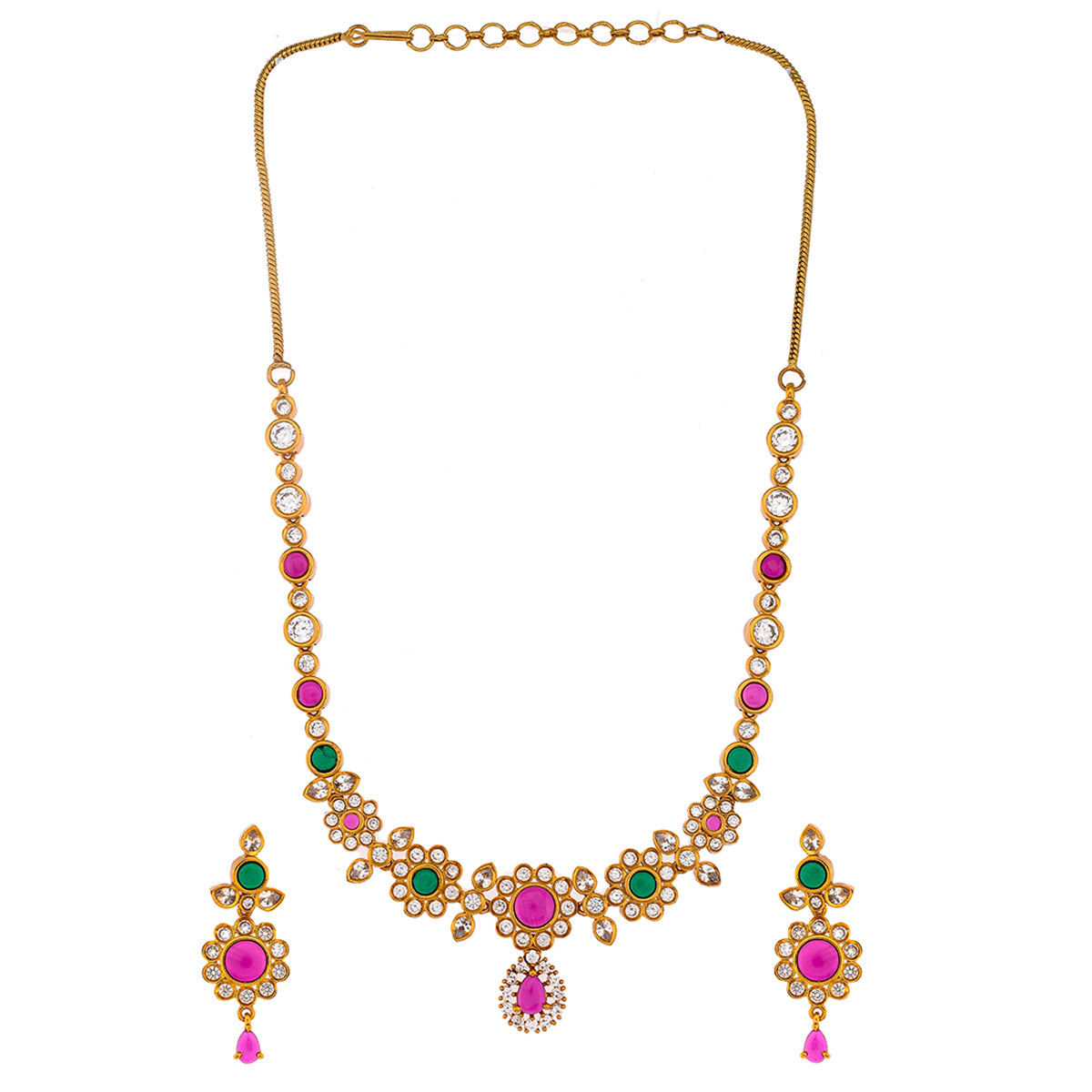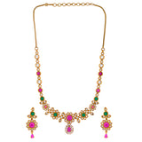 Gold Opulence Floral Motif Green and Red Stones Jewellery Set