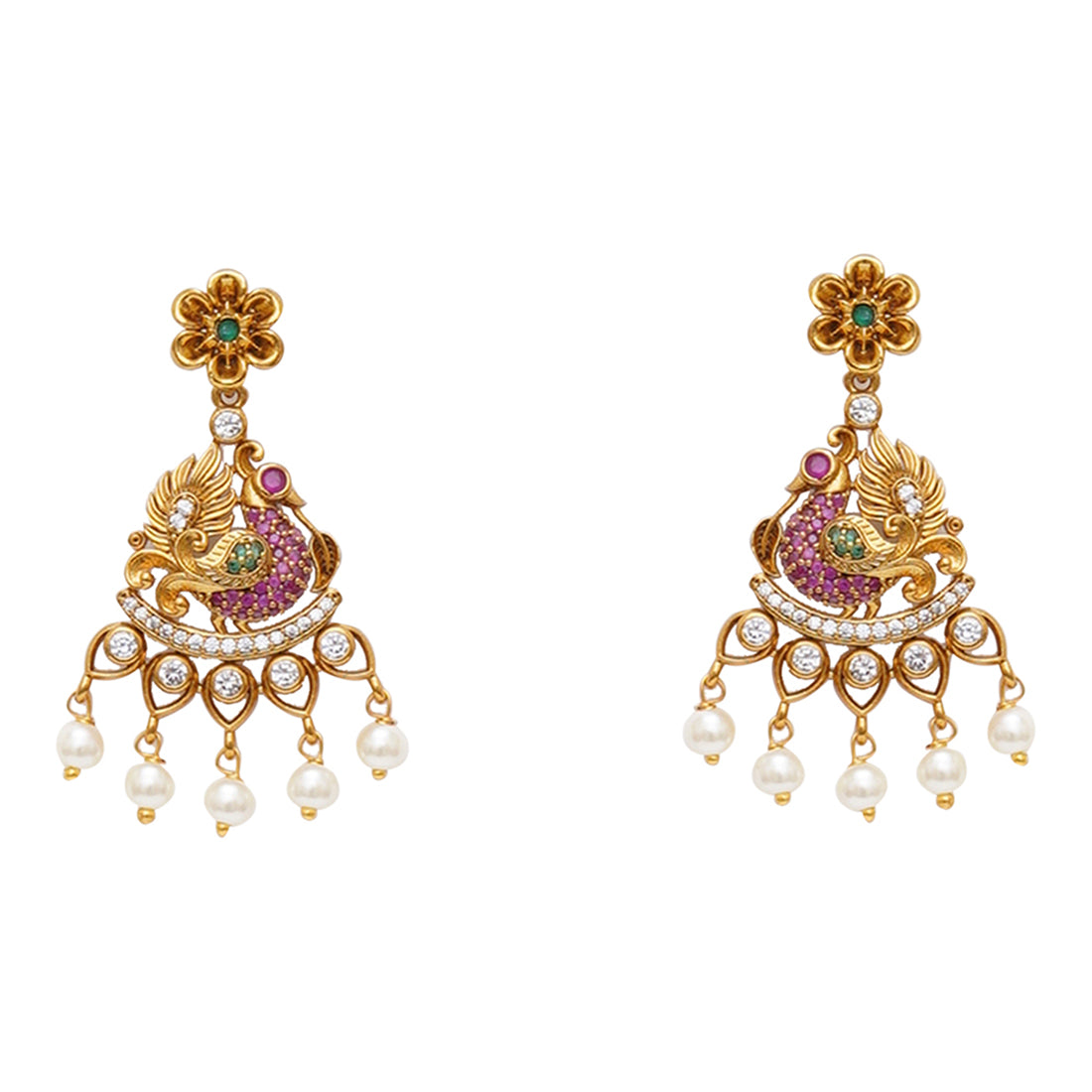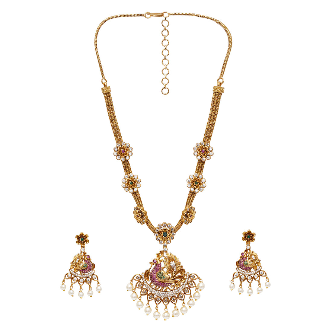 Gold Opulence Floral Zircons and Faux Pearls Adorned Gold Toned Jewellery Set