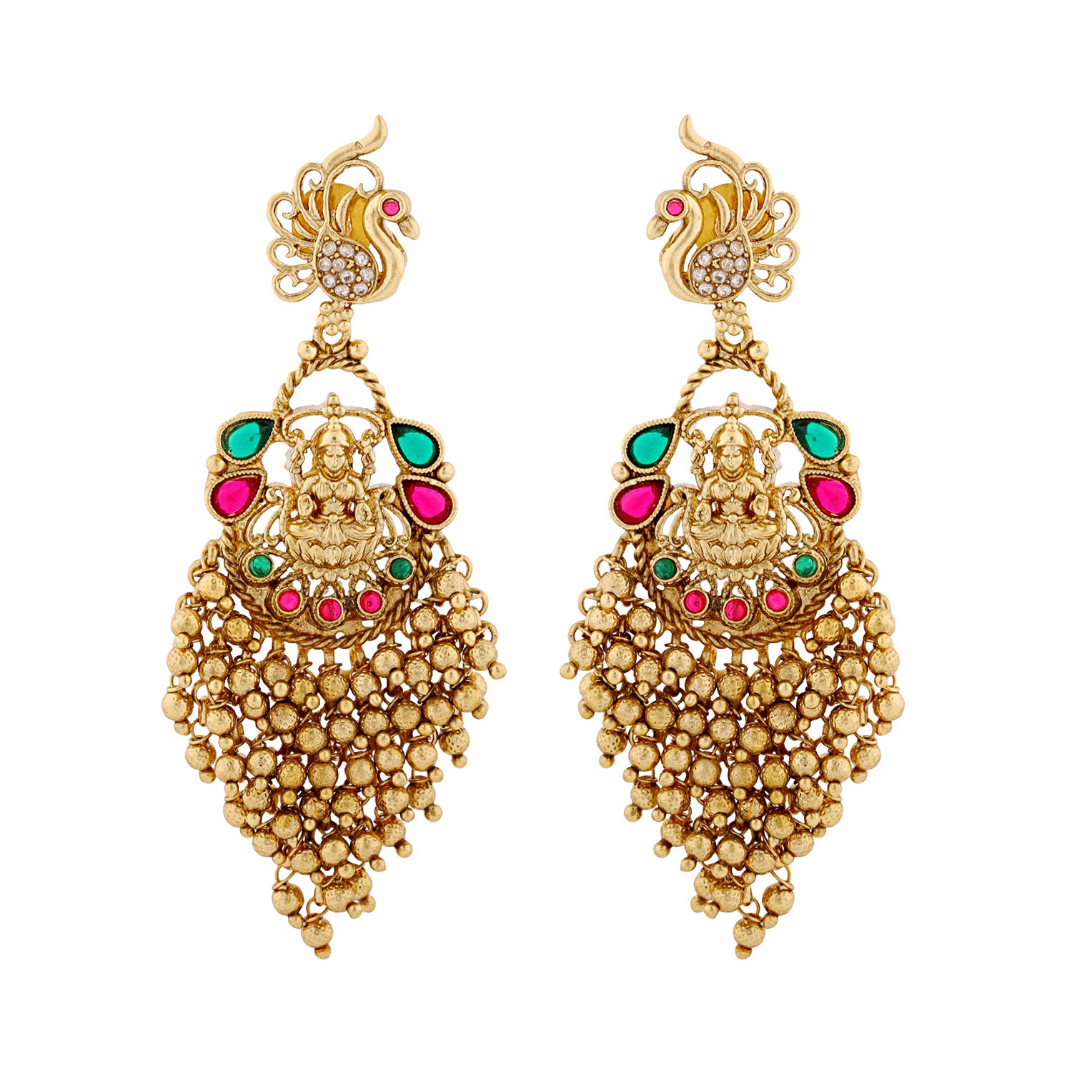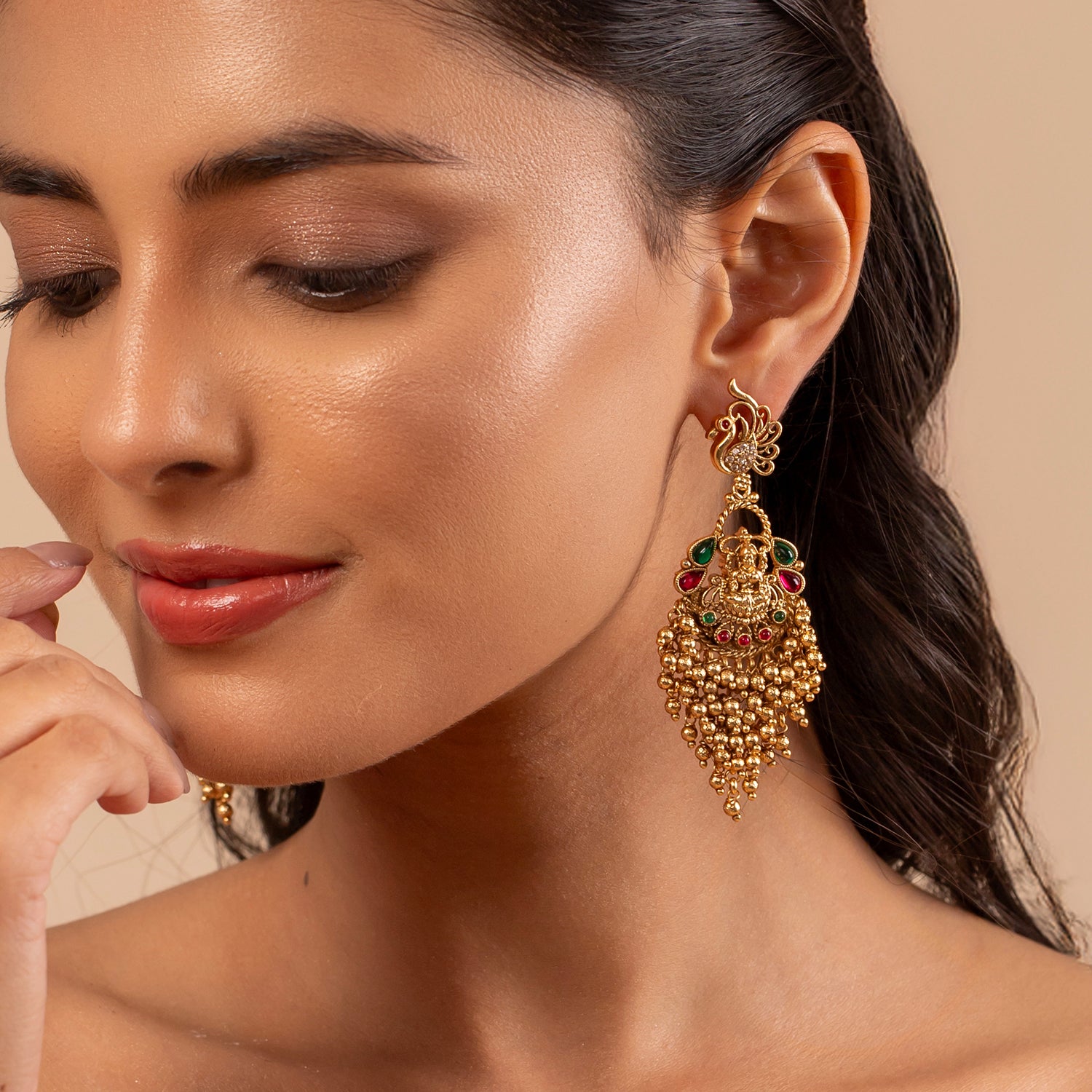 Gold Opulence Mayura Mahadevi Temple Earrings
