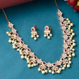 Gold Opulence Meenakari Faux Pearls and CZ Adorned Gold Plated Jewellery Set