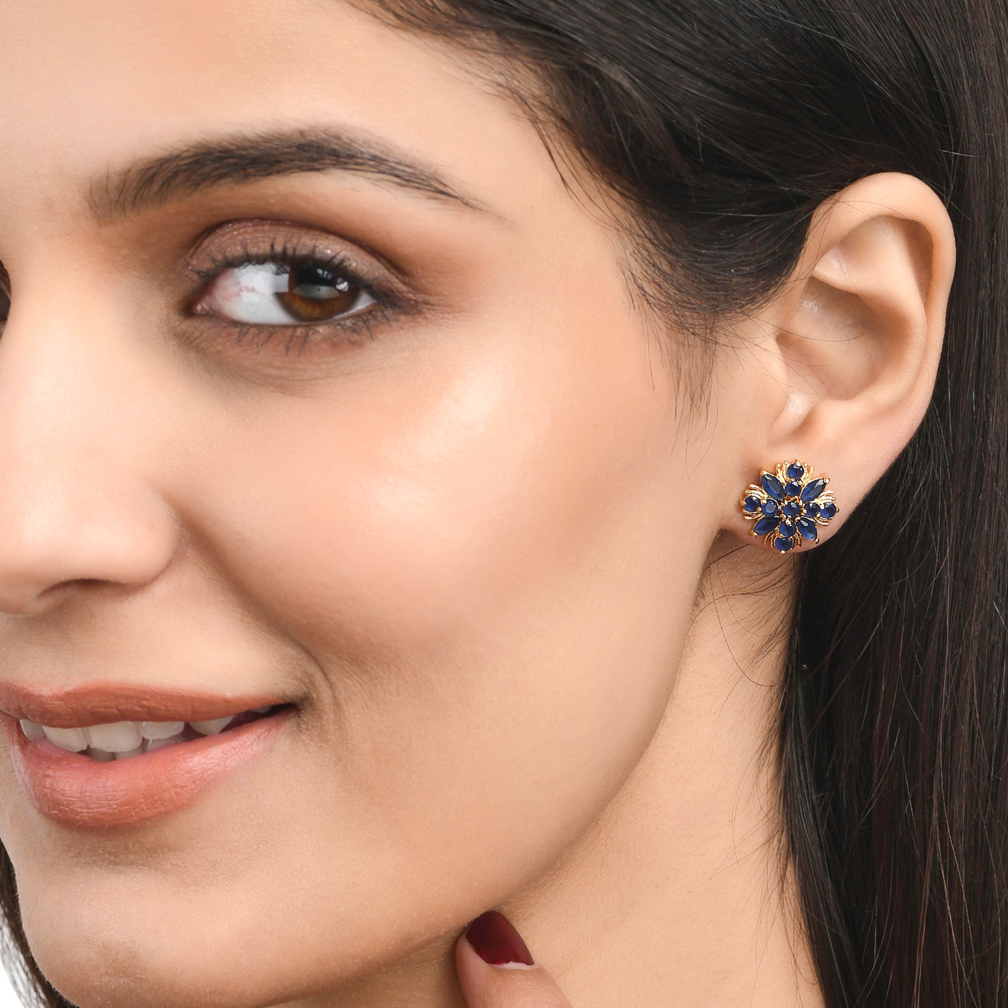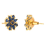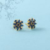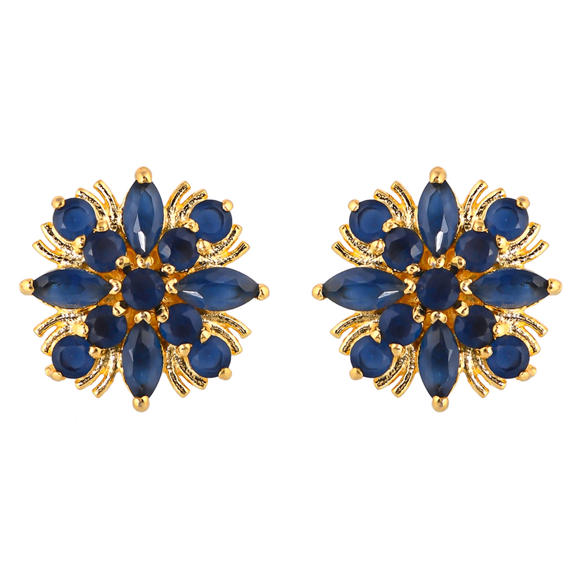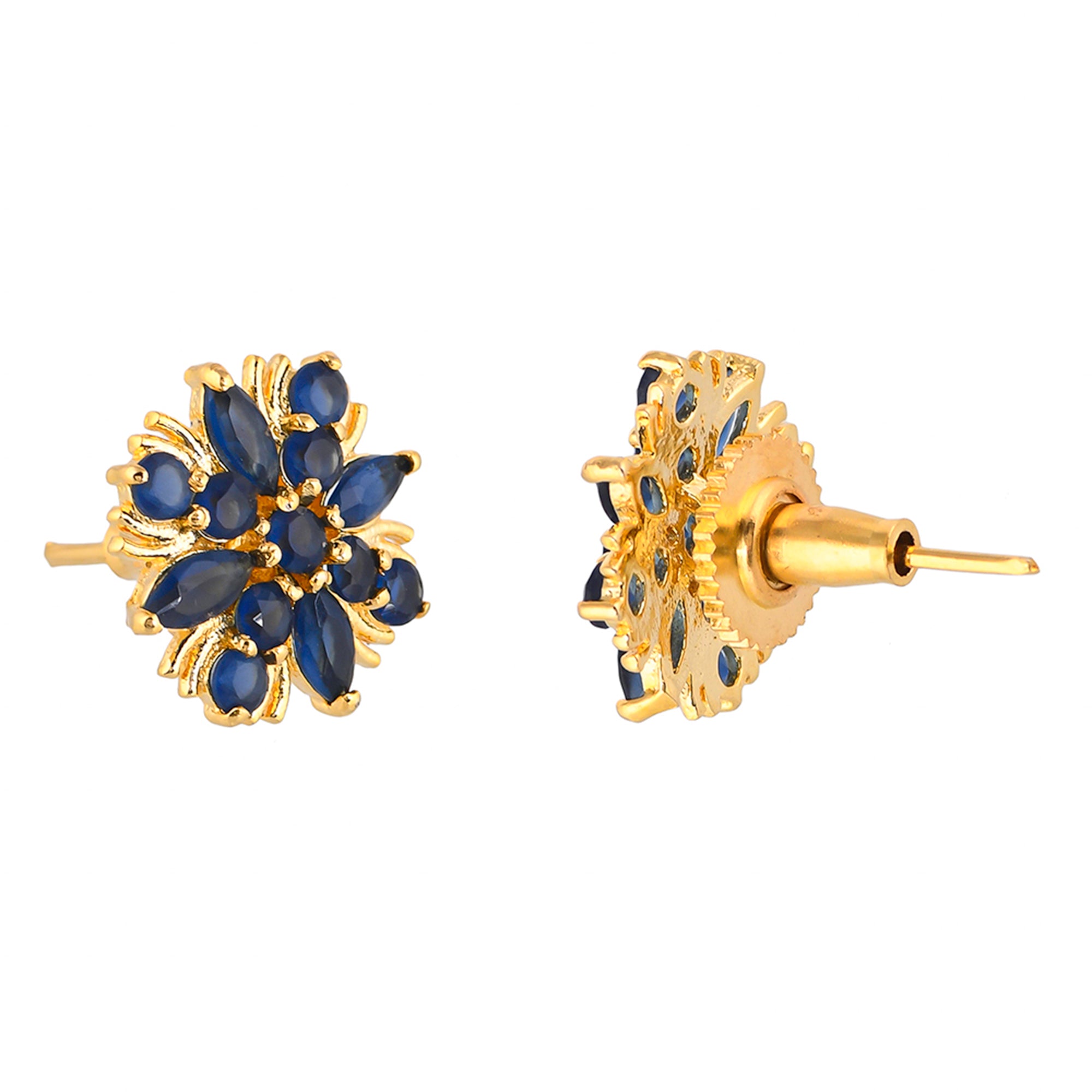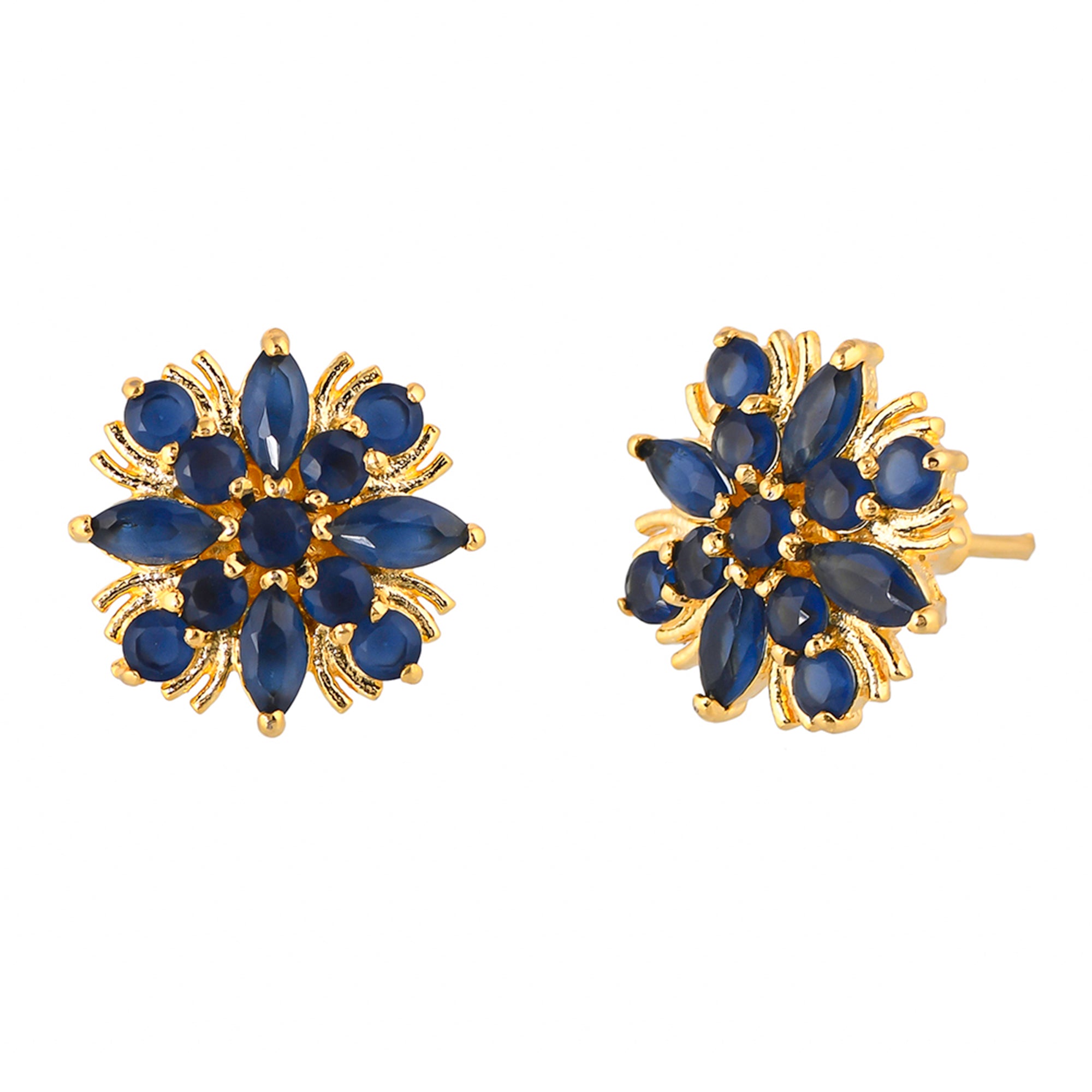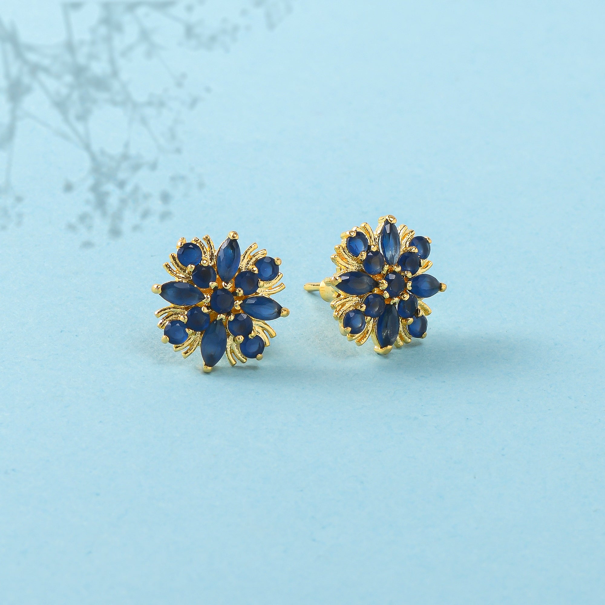 Gold Plated Blue Zirconia Gems Stud Earrings