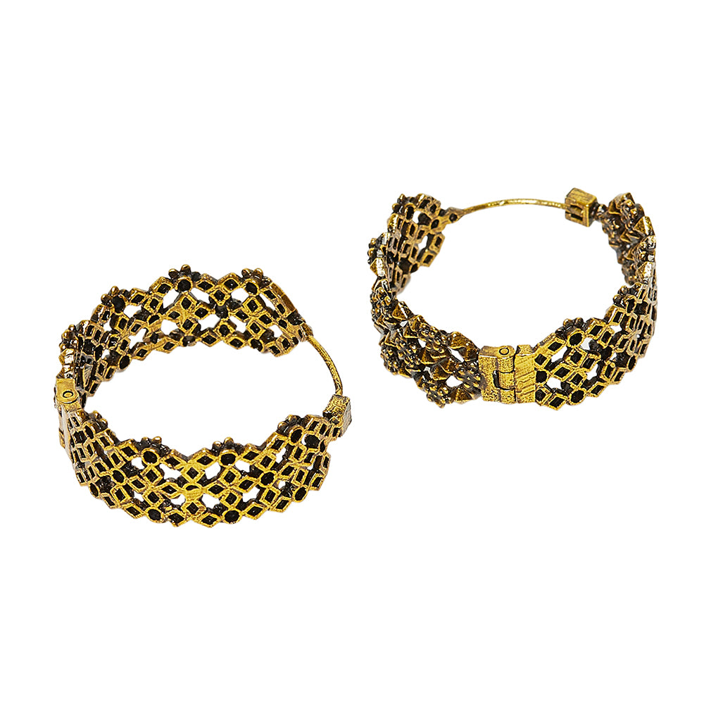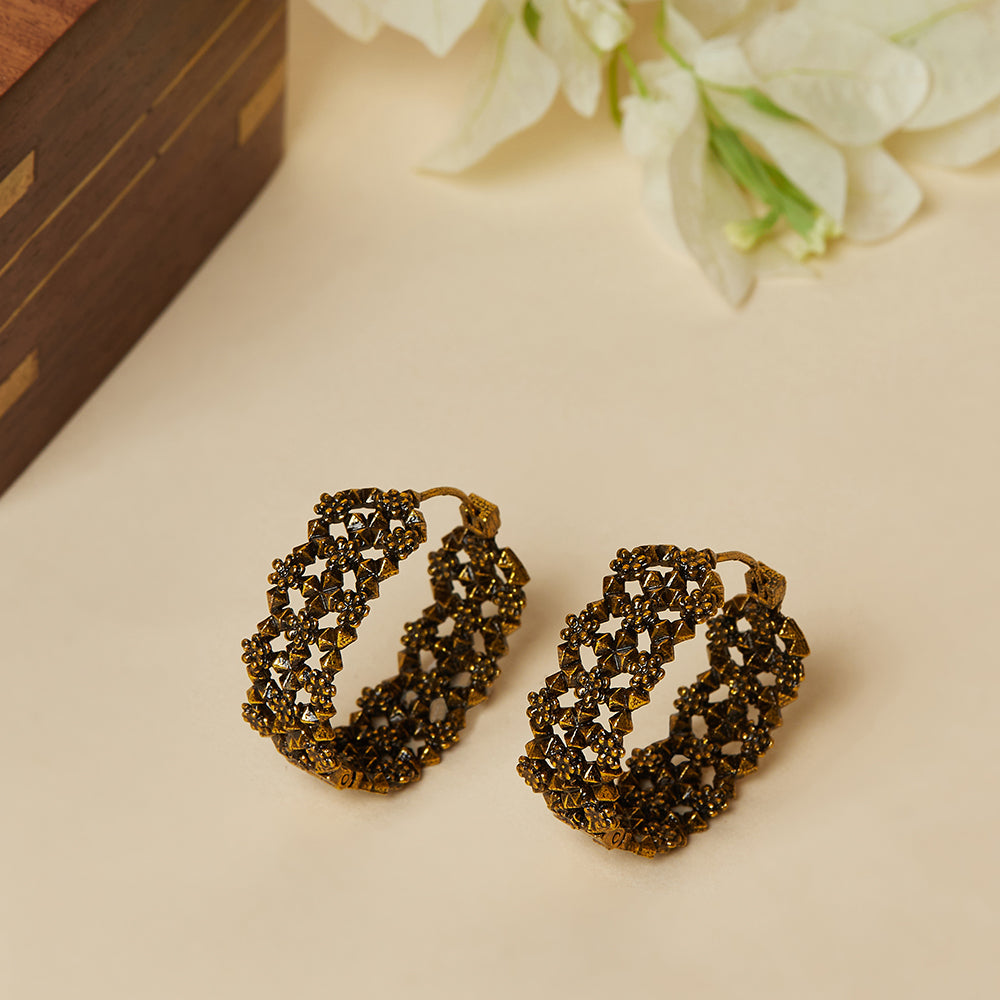 These brass earrings built to go with all your boho-chic outfits is just itching to be part of your wardrobe now! Make this oxidized brass earring in gold plating earring piece from the latest collection of Voylla, a part of your wardrobe today. Get this both online and offline today.