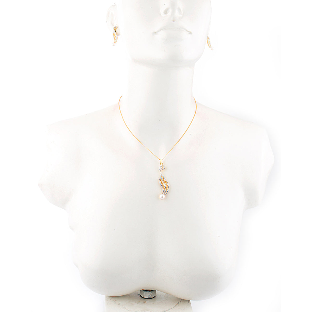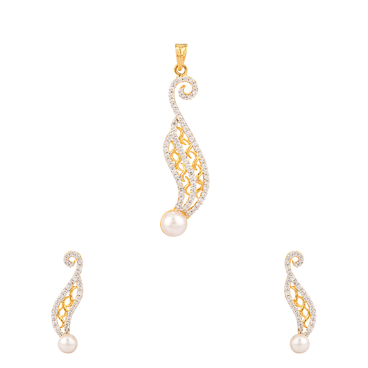 The sparkle of American Diamond stones over the most classic leafy design style makes this gold plated pendant set ideal to add the scintillating effect to your regular outfits as well as to your distinctive personality. It is must-have jewellery & this is the perfect time to shop.