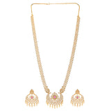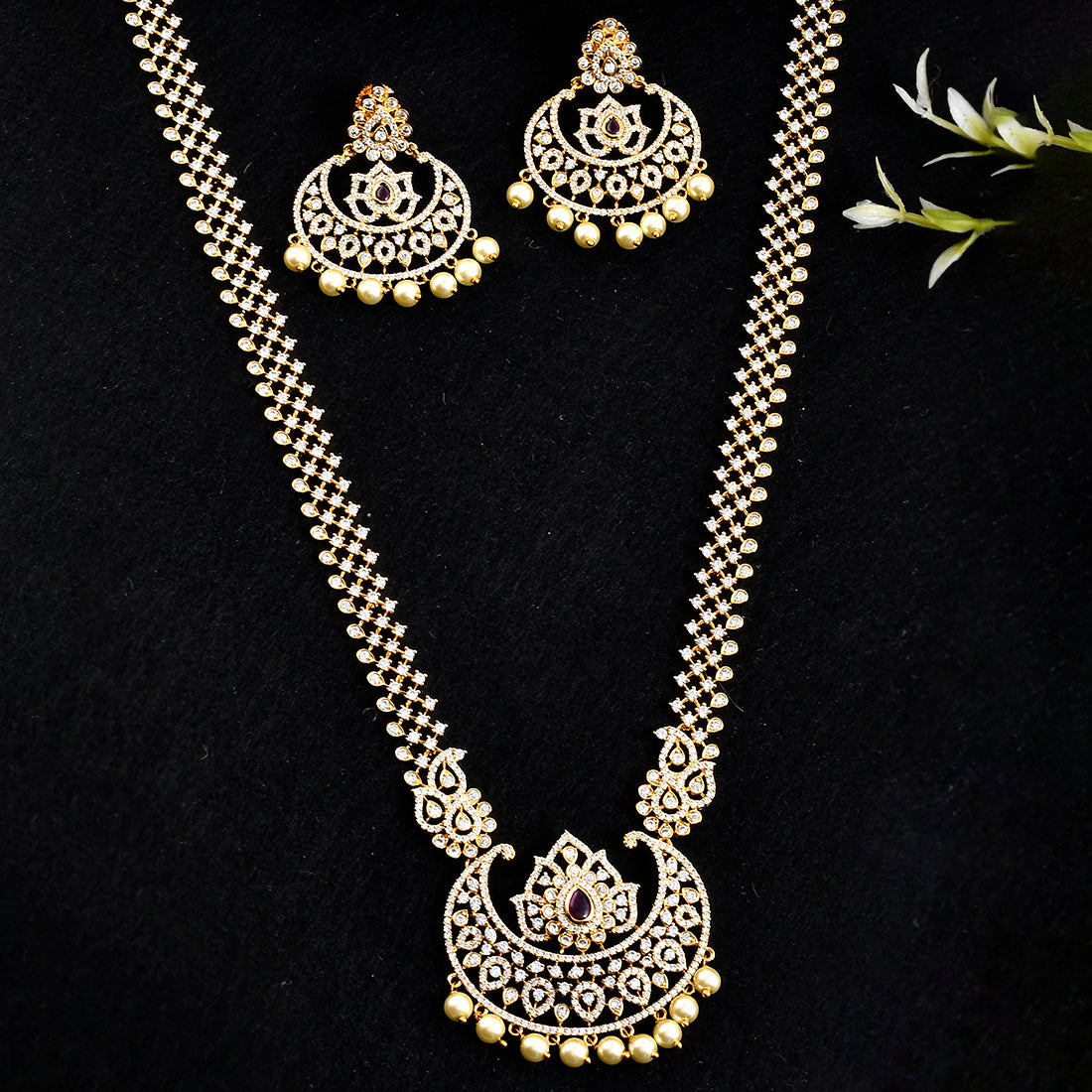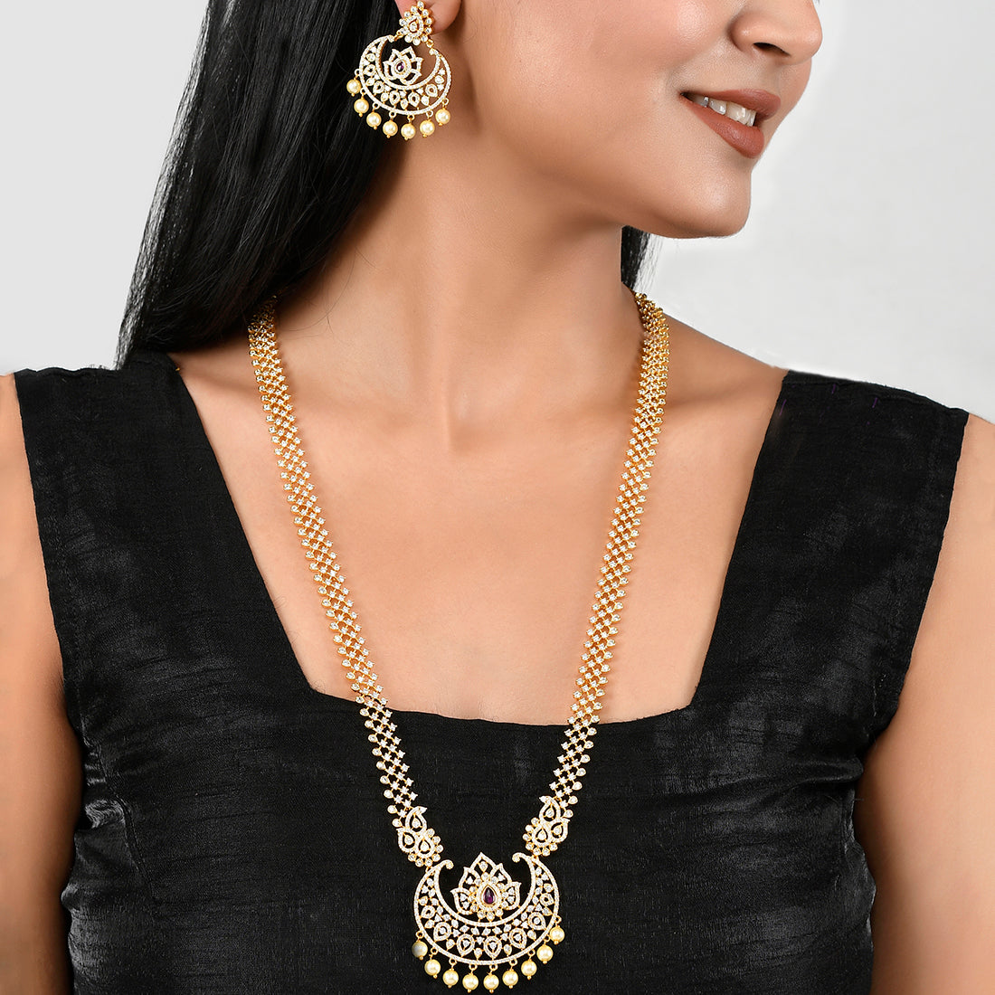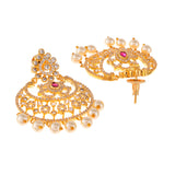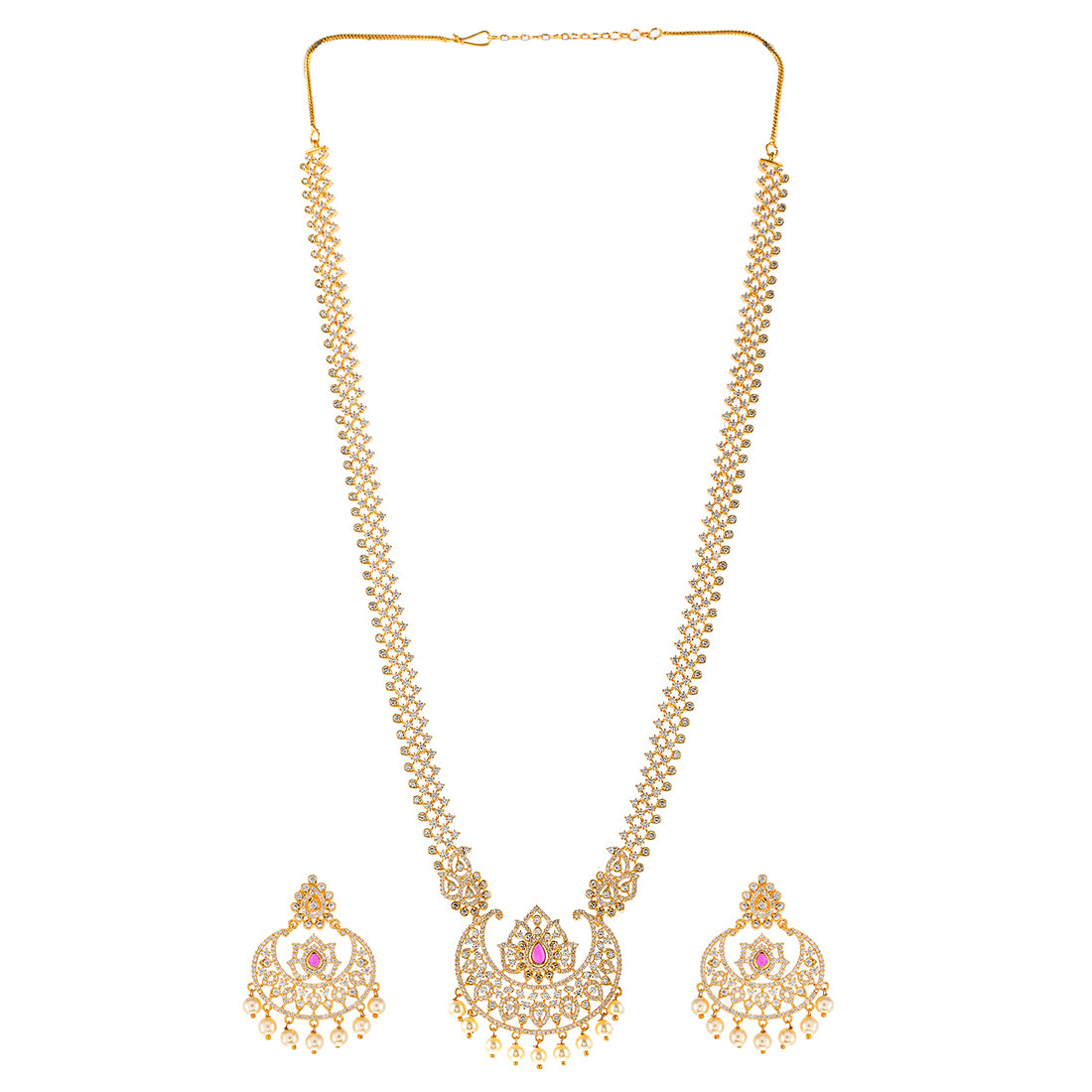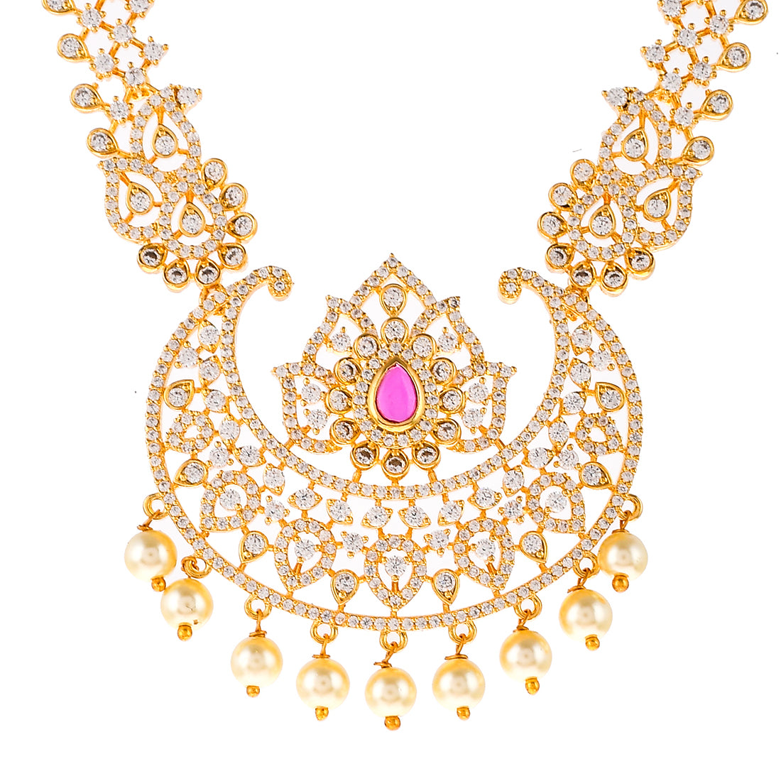 Gold Plated Cluster Setting CZ and Pearl Beads Jewellery Set
