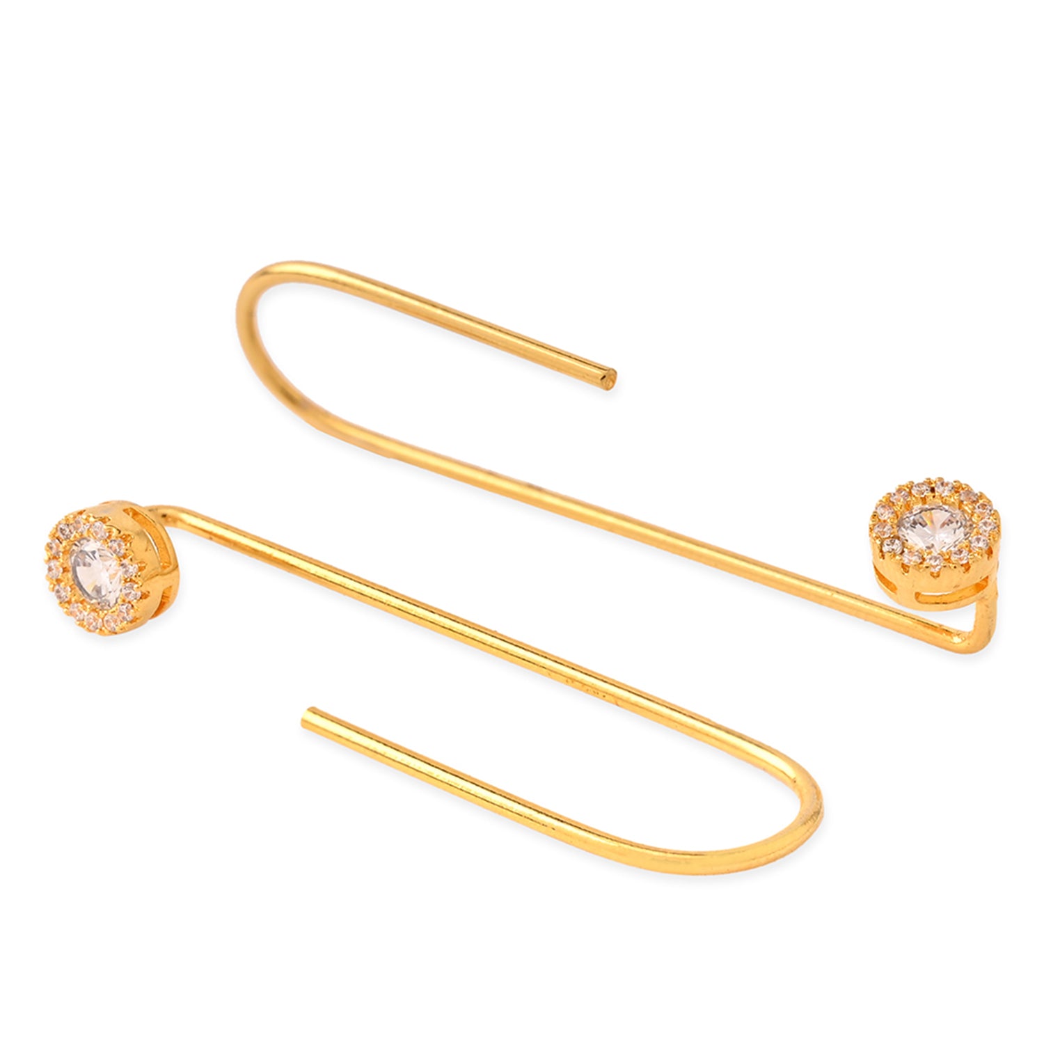 When you want your natural beauty to glow, simplicity is the way to go. These long pair of earrings are simple and luxurious that highlight the beauty in you. The high-quality American Diamond stones and gold plating add the right balance of sophistication to these gorgeous danglers.
