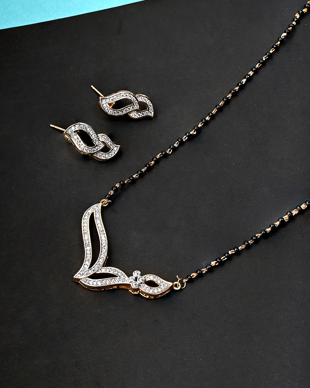 This mangalsutra set is designed to keep Indian married women in mind who want variety in black beads for their everyday fashion. Crafted with high-quality CZ stones and plating to a fine finish. Style it on your work outfit or tunics to keep it simple and elegant.